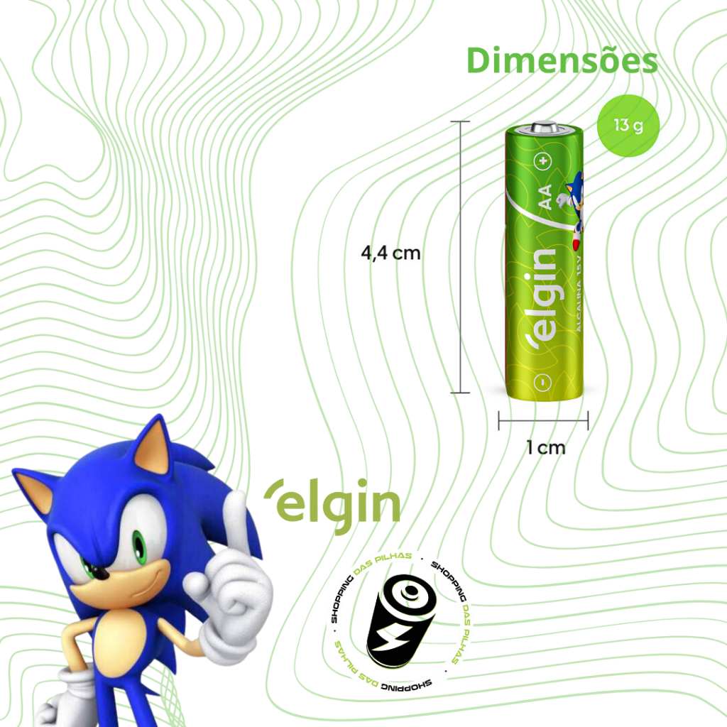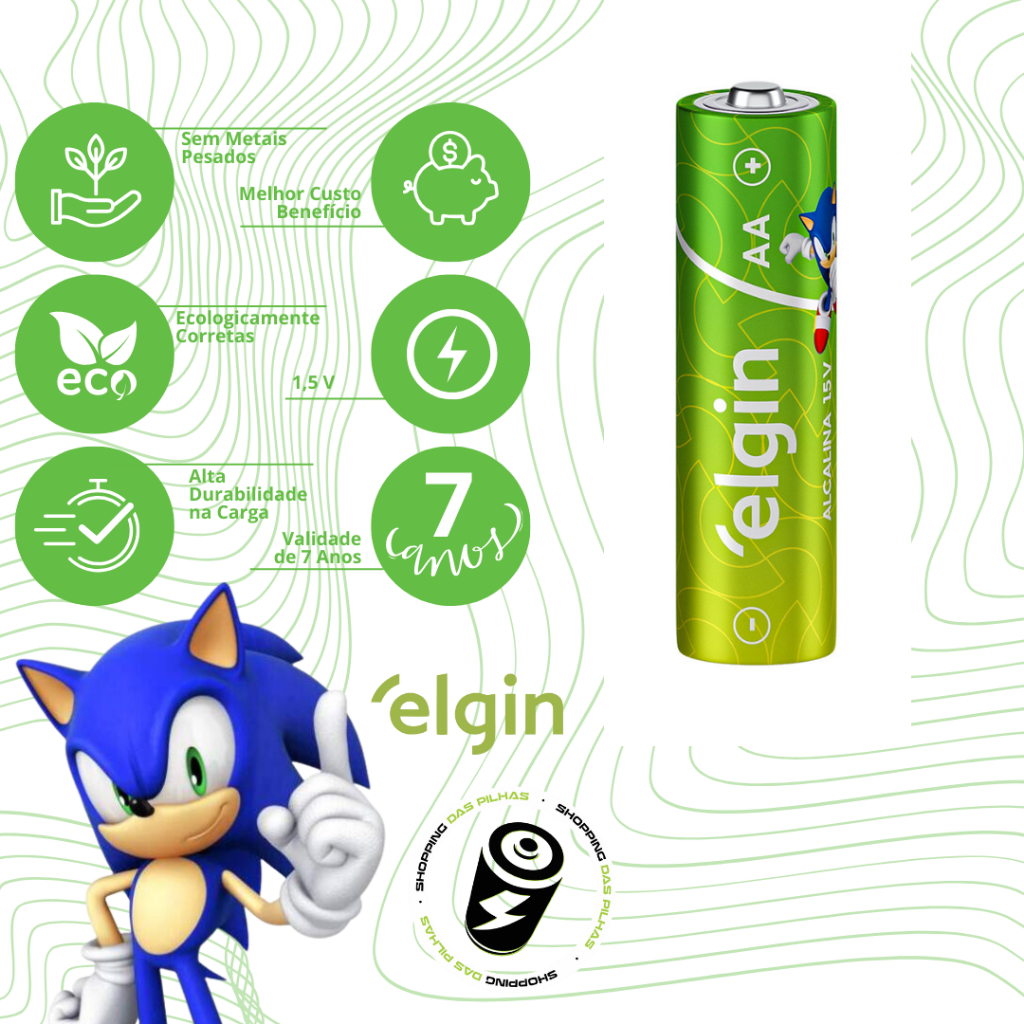 Cartela Com 8 Pilhas Aa Alcalina 2A Elgin Linha Sonic LR06
