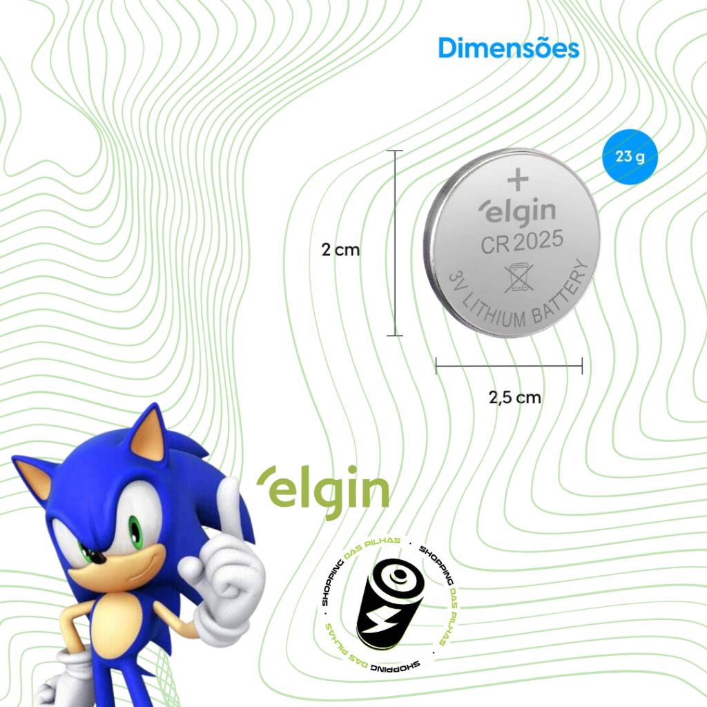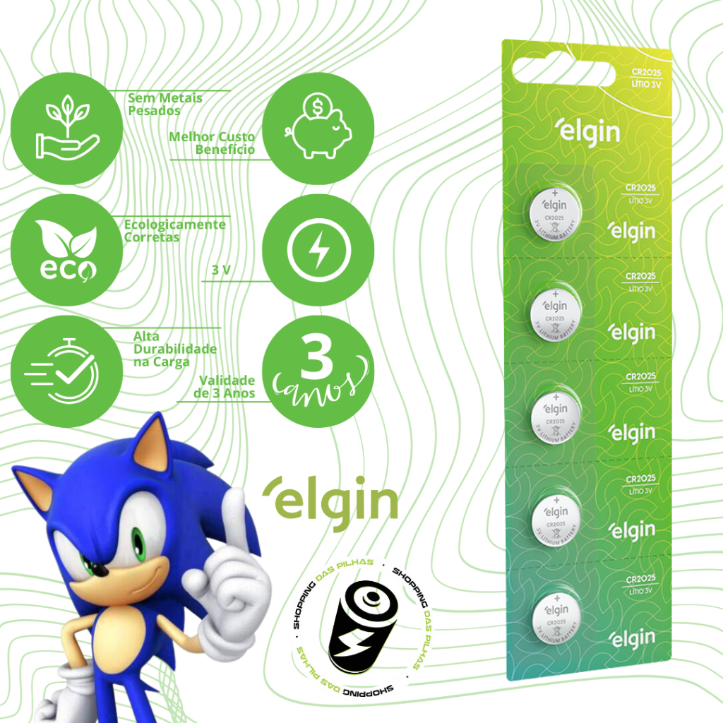 20 Baterias CR2025 3V Tipo Moeda Litio Lithium Elgin Energy - 04 Cartelas C/ 05 Unidades