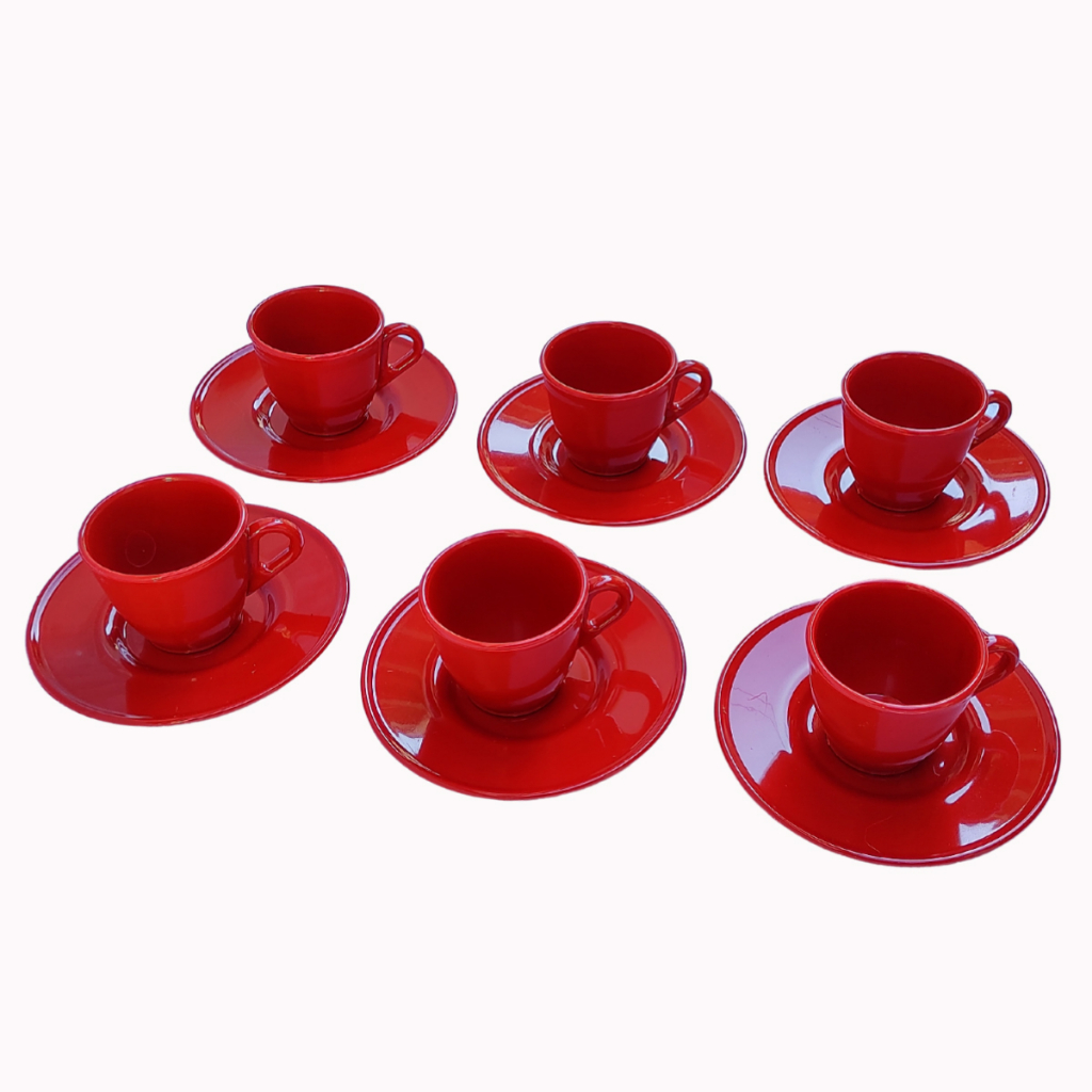 Lindo Jogo Xicaras + Pires P/ Dia Das Mães C/ 6 Pçs Vermelho