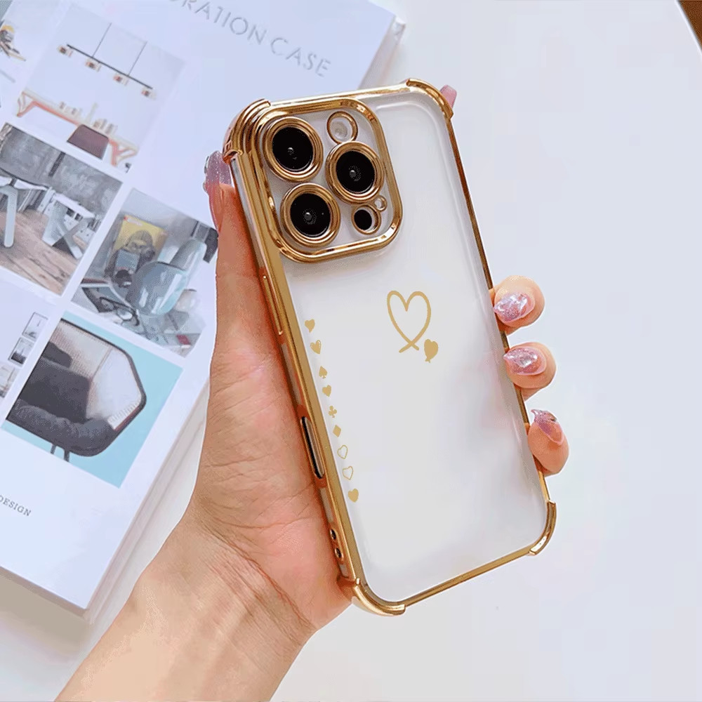 Capa De Telefone Coração Dourado Para Realme Note 70 70T 60 50 C71 C75 C75X C63 C61 C55 C53 C51 C30 C30S 6i 5i 5 Galvani