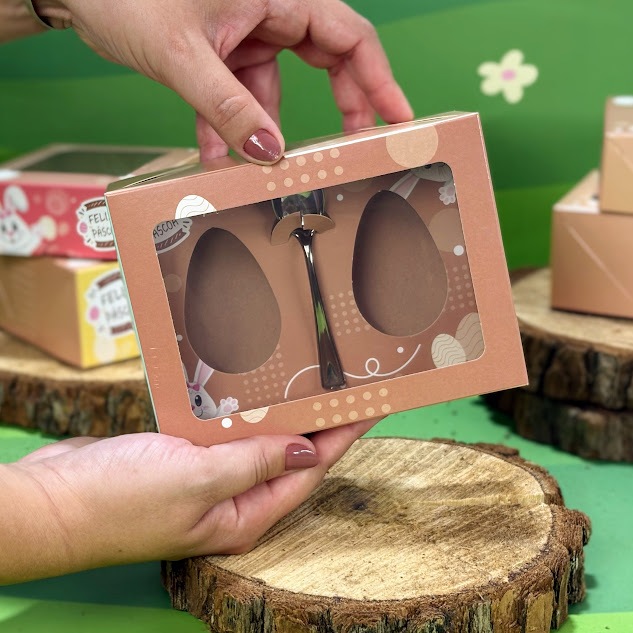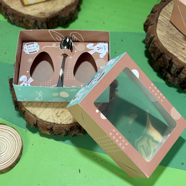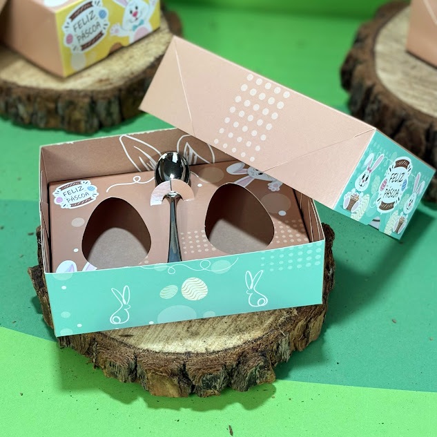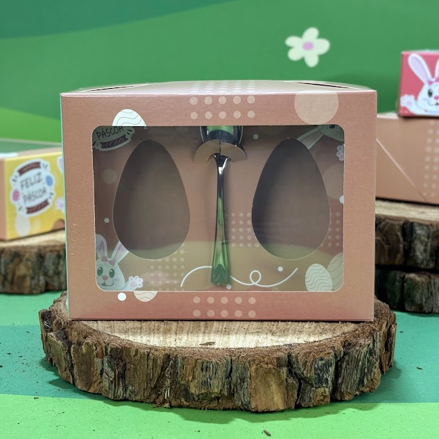 Kit 10 Unidades Caixa Ovo Colher 50g Colorido 2 Ovos 5x15x11cm Chocolate Confeitaria Visor Doces