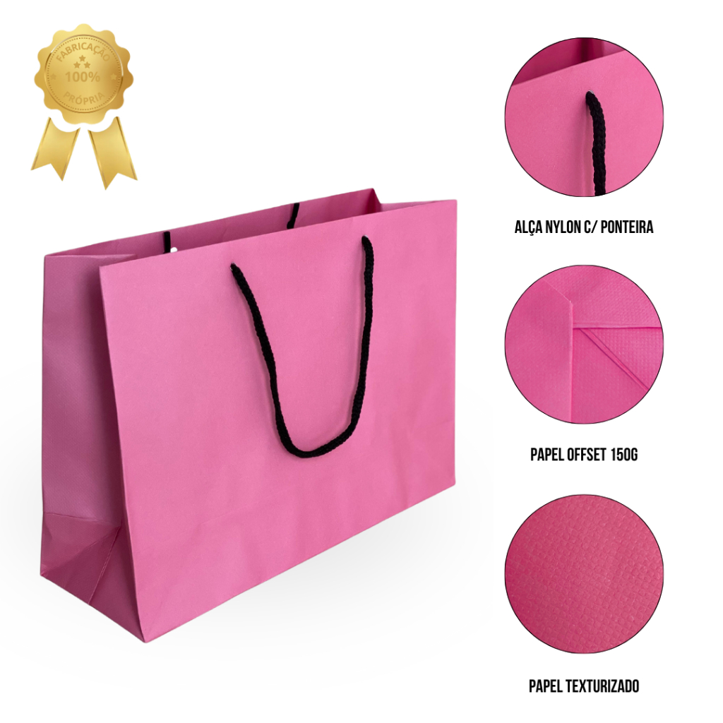 Embalagem Sacola Horizontal GG Kit 10 Unidades Rosa Dia Mães Aniversário Presente Brindes Roupas