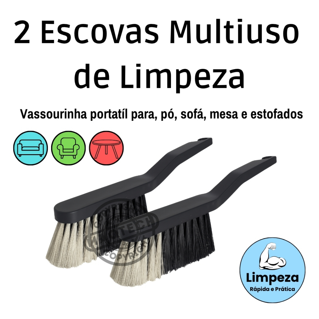 2 Escovas Multiuso Limpeza Vassourinha de Mão Espanador de Pó Escova Sofá Mesa e Balcão Espanadeira
