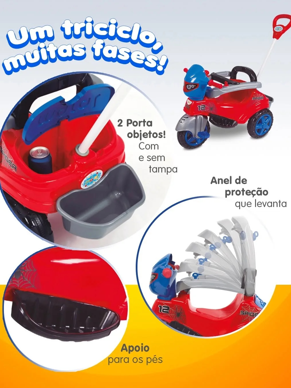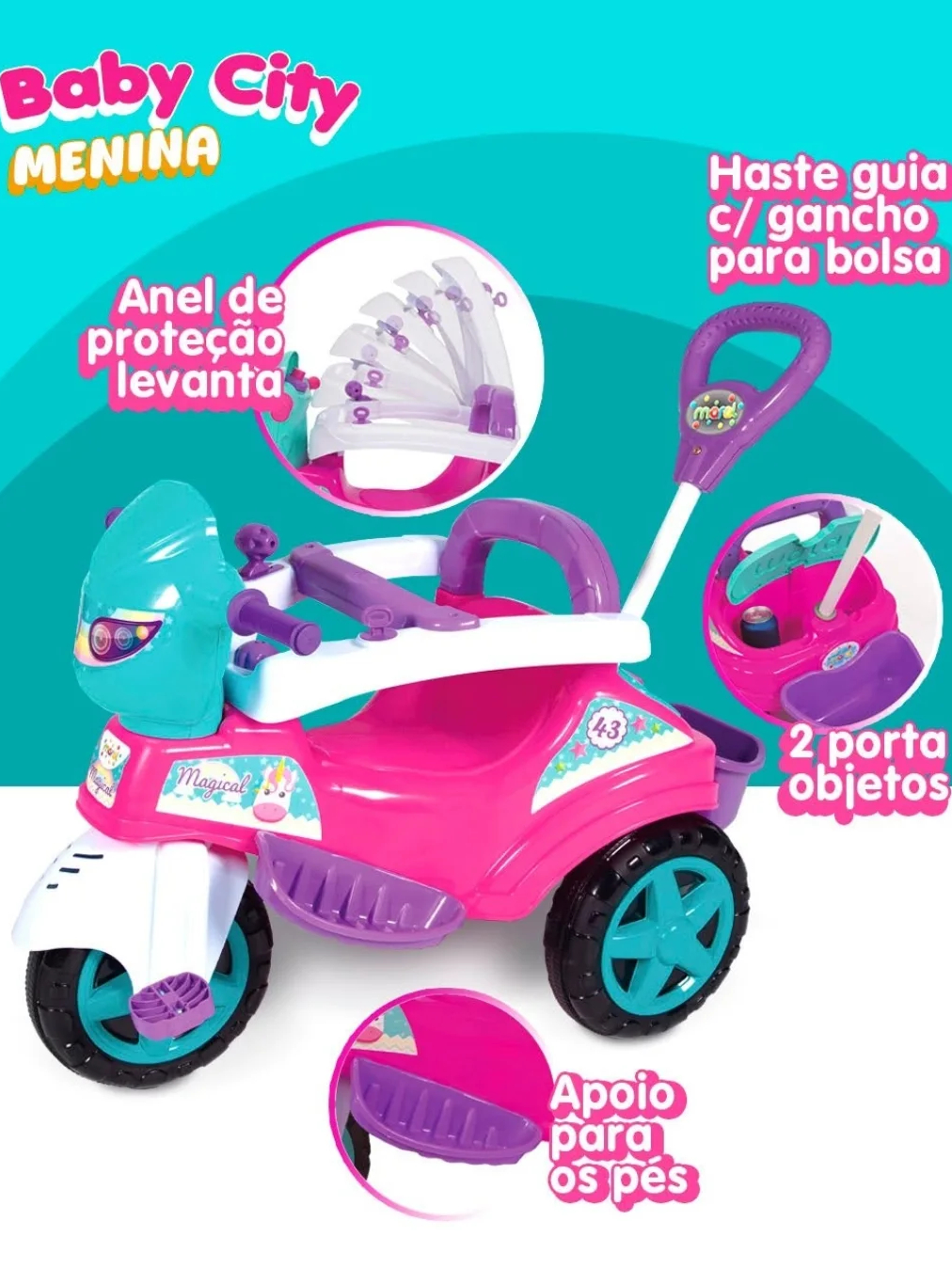 Triciclo Infantil Passeio com Empurrador e Cercado de Proteção –Magical Menina