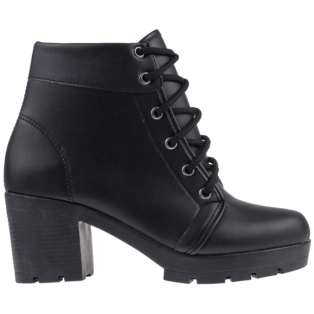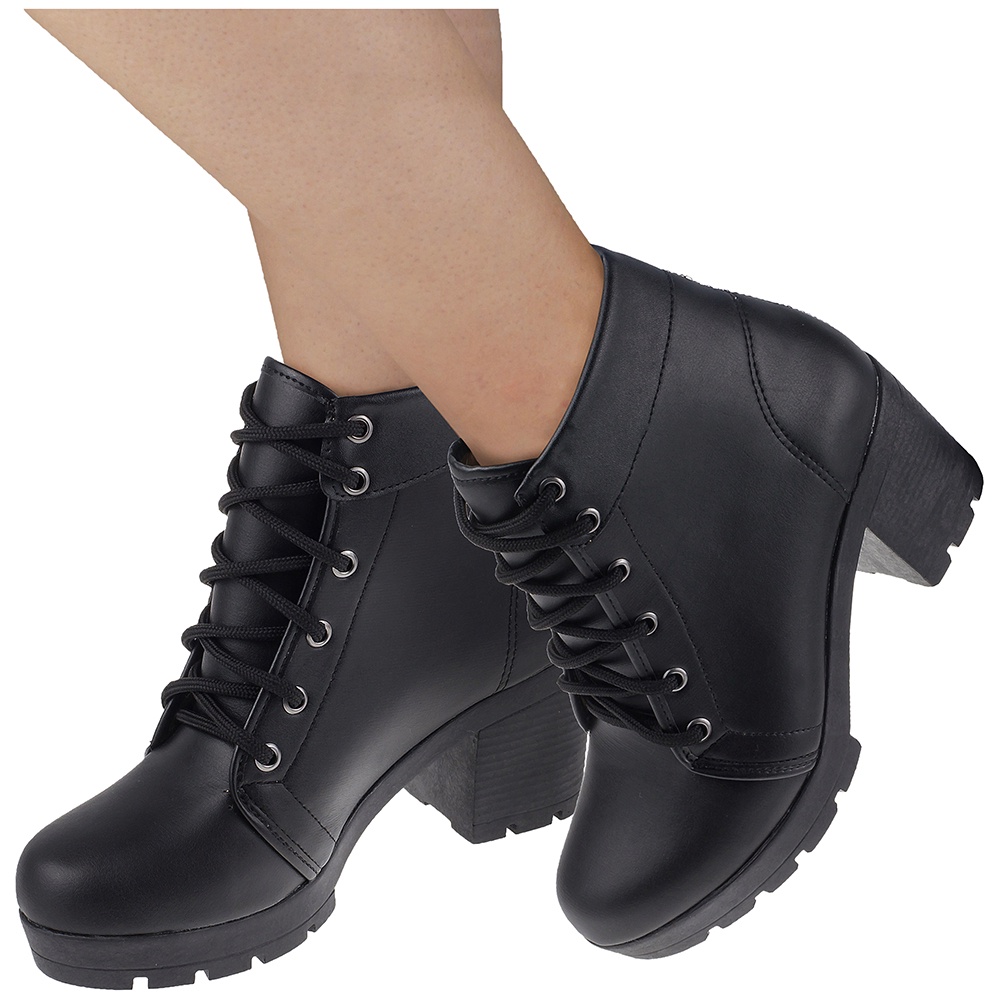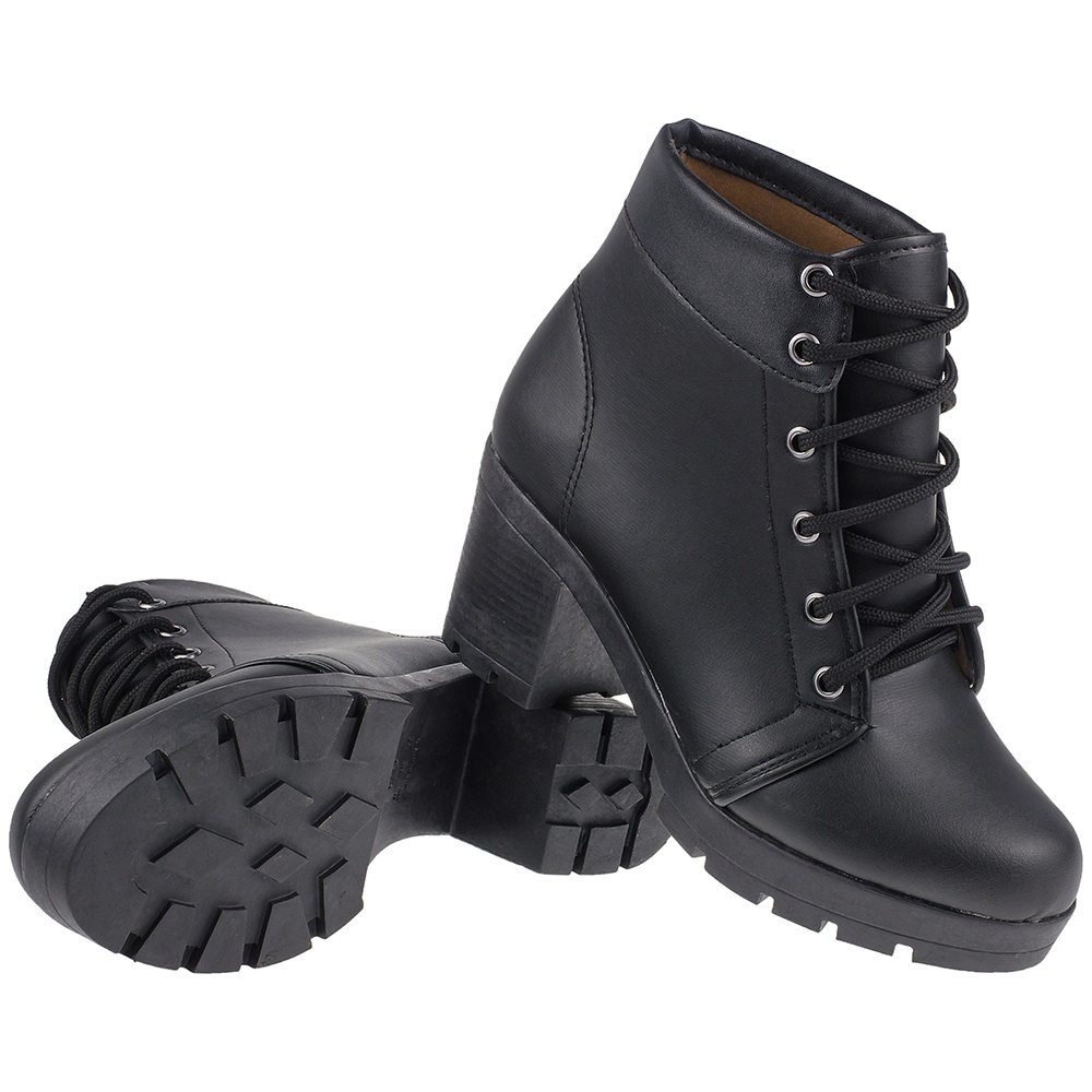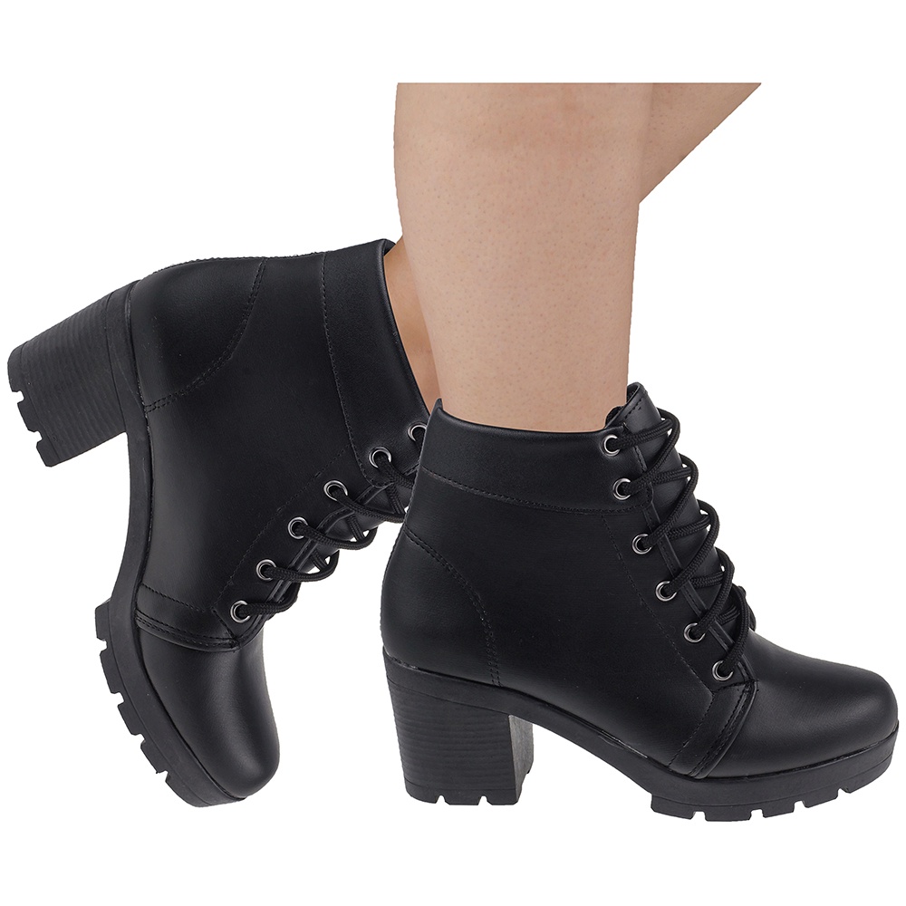 Botas Feminina Coturno Salto Tratorado Cano Curto Macio Napa Preto - Mania de Mulher