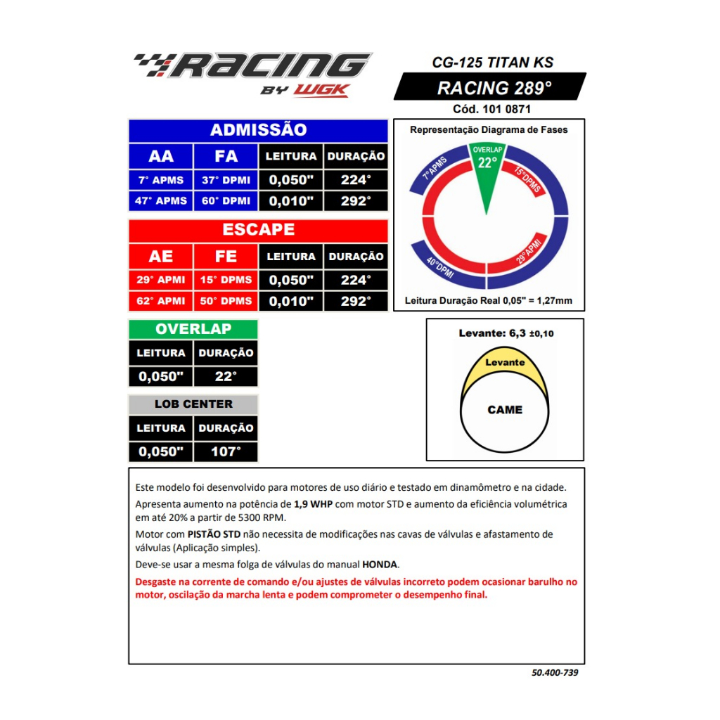 Ressalto Comando Preparado Cg Titan 2000 Fan 125 Até 08 292°