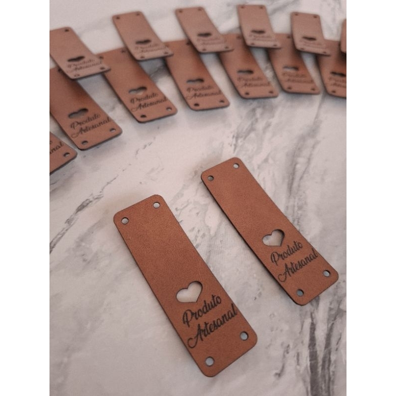 Etiqueta de couro sintético borda/bandeirinha 30 unidades 6x2 cm