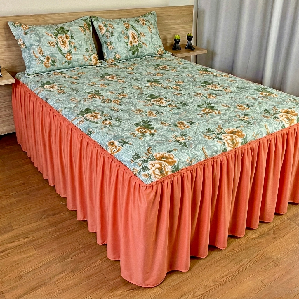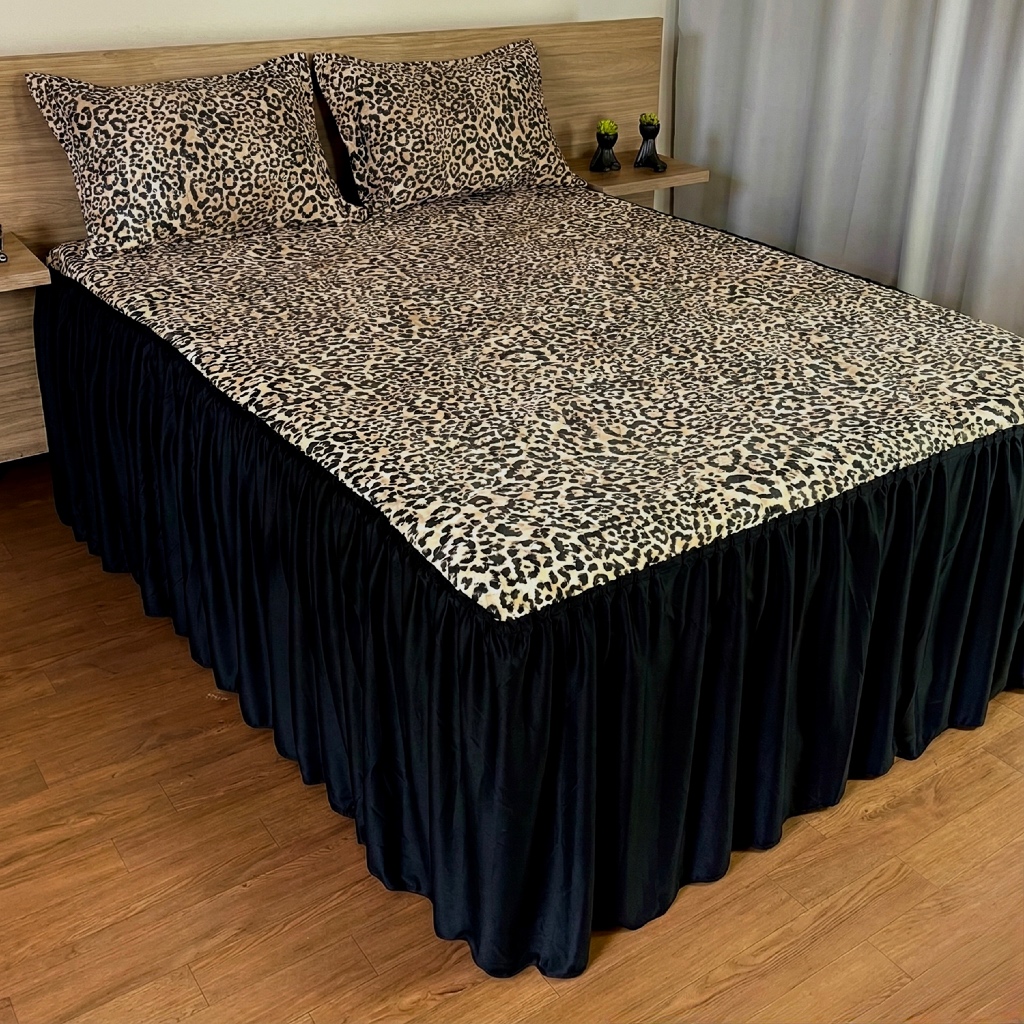 03 Lençóis Colcha com Elástico Super King Com Fronhas e Babado Malha100% Algodão 160g Estampas Sortidas