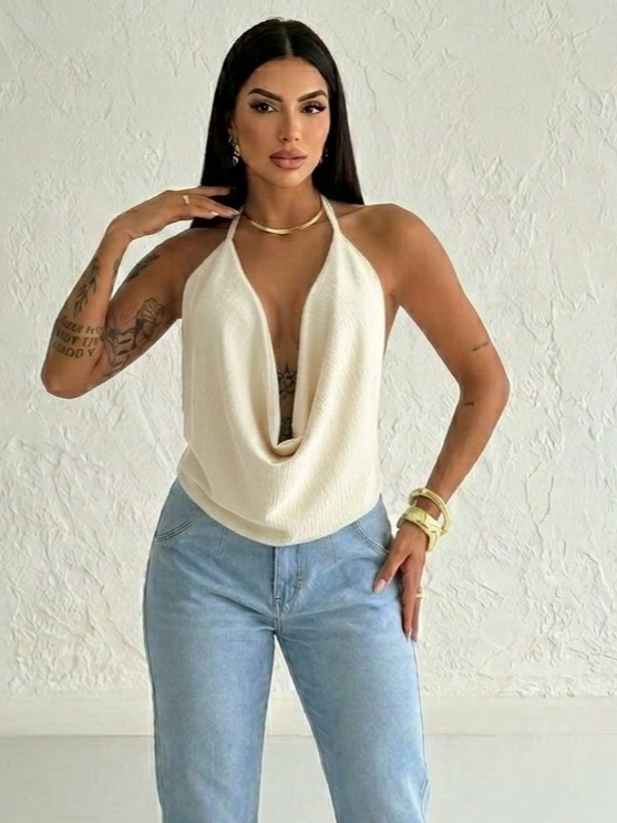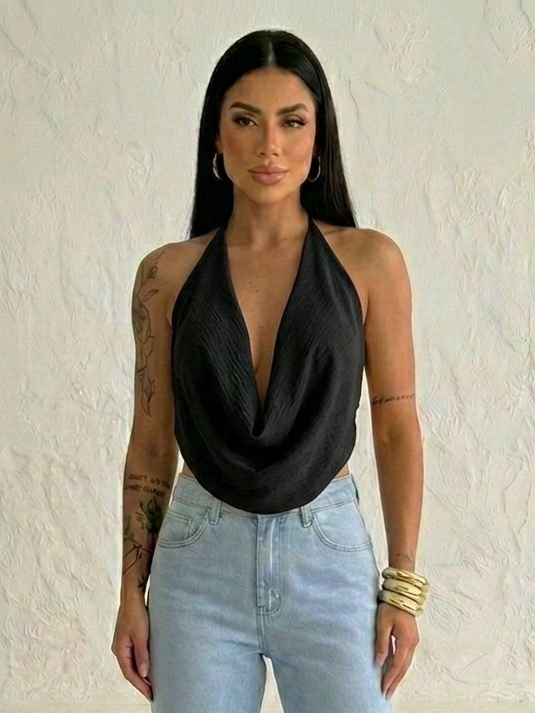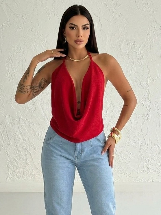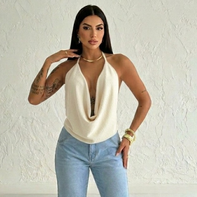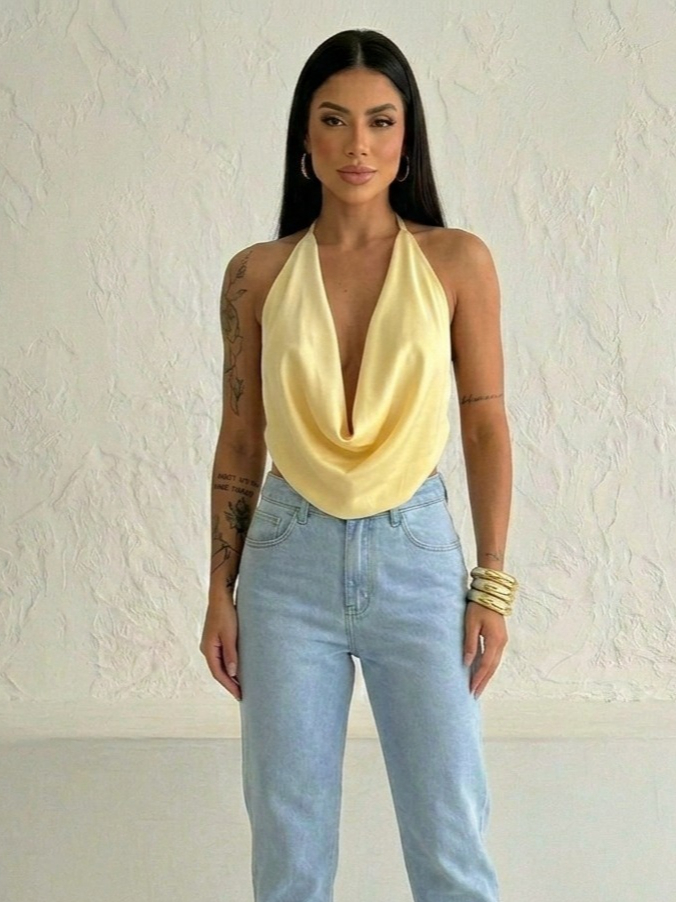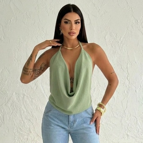Cropped Feminino Carnaval Gola Boba Fresquinha Dunas Regata Lisa Basica Frente Unica Moda Blogueira Elegante