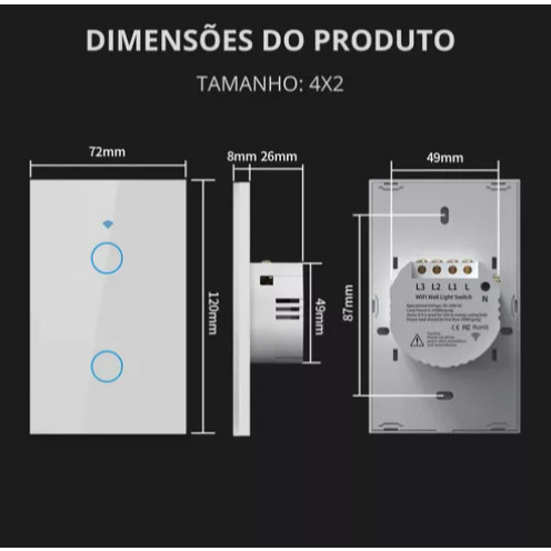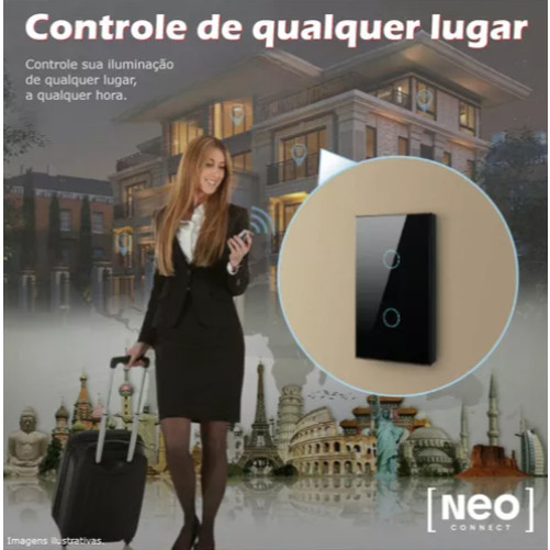 KIT WiFi Interruptor Inteligente Touch com Controle Remoto Sem Fio para Alexa e Google Home
