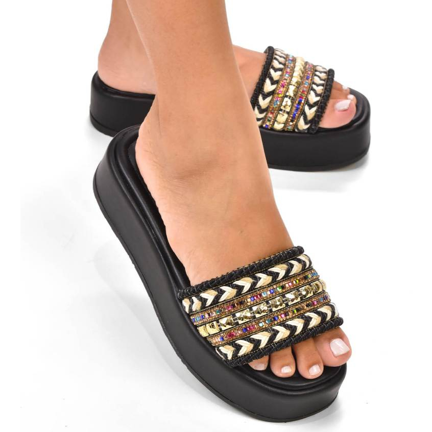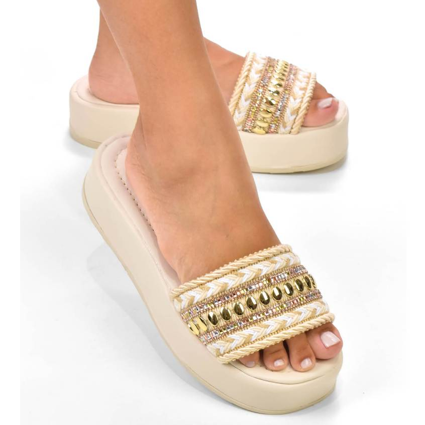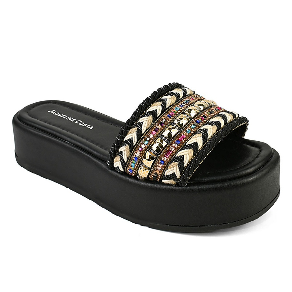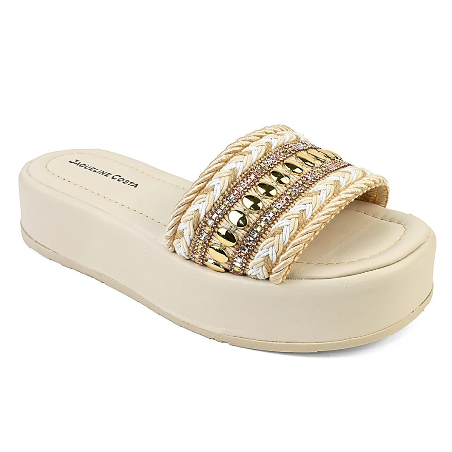 Tamanco Feminino Plataforma Bordado Strass Blogueirinha Moda Jaqueline Costa