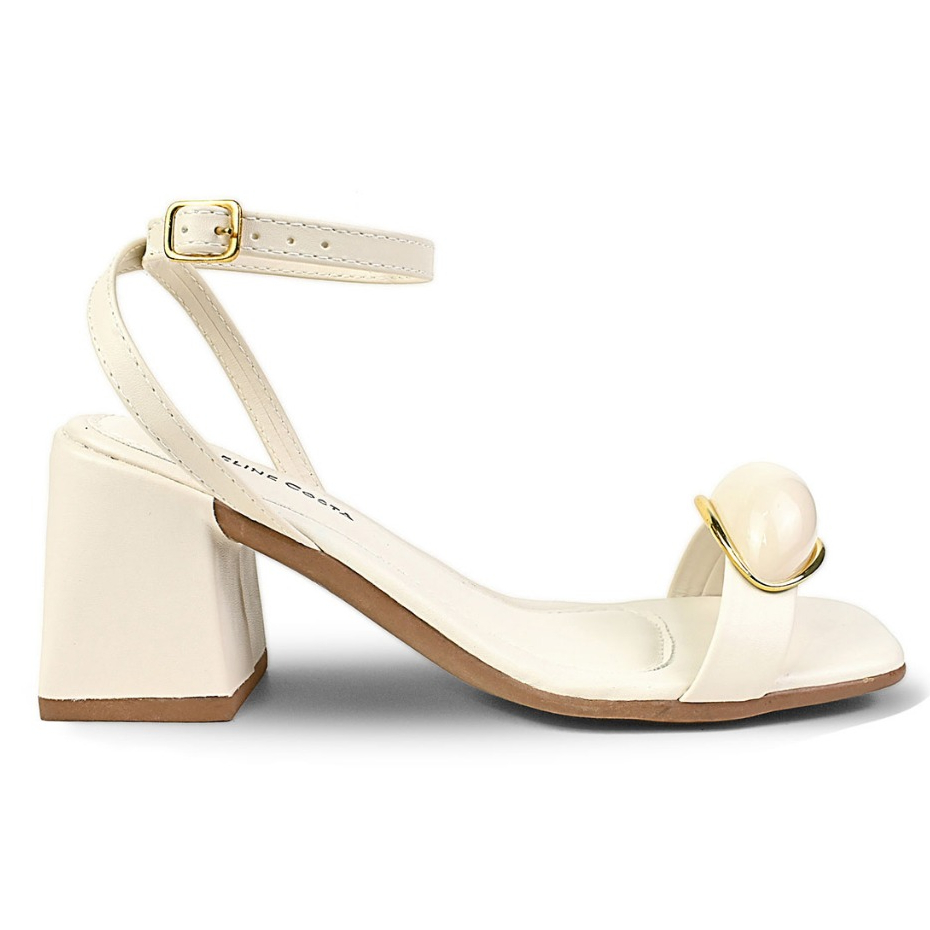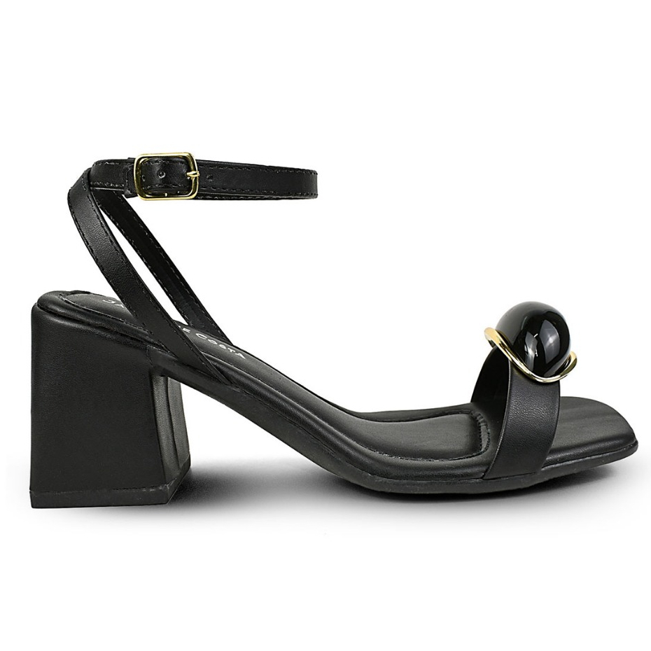 Sandália Feminina salto baixo Bloco Enfeite Metalizado Casual Moderna Básica Jaqueline Costa