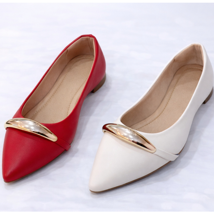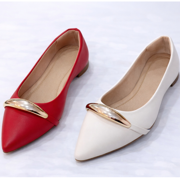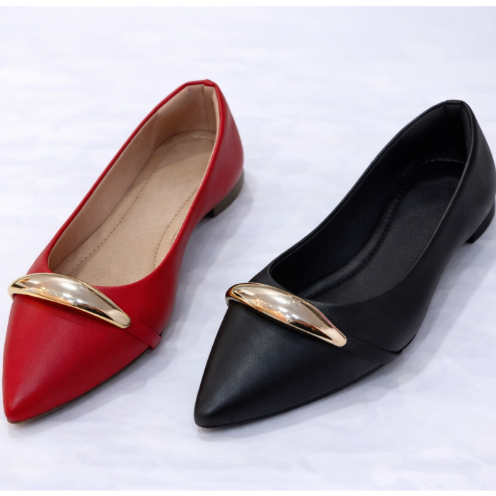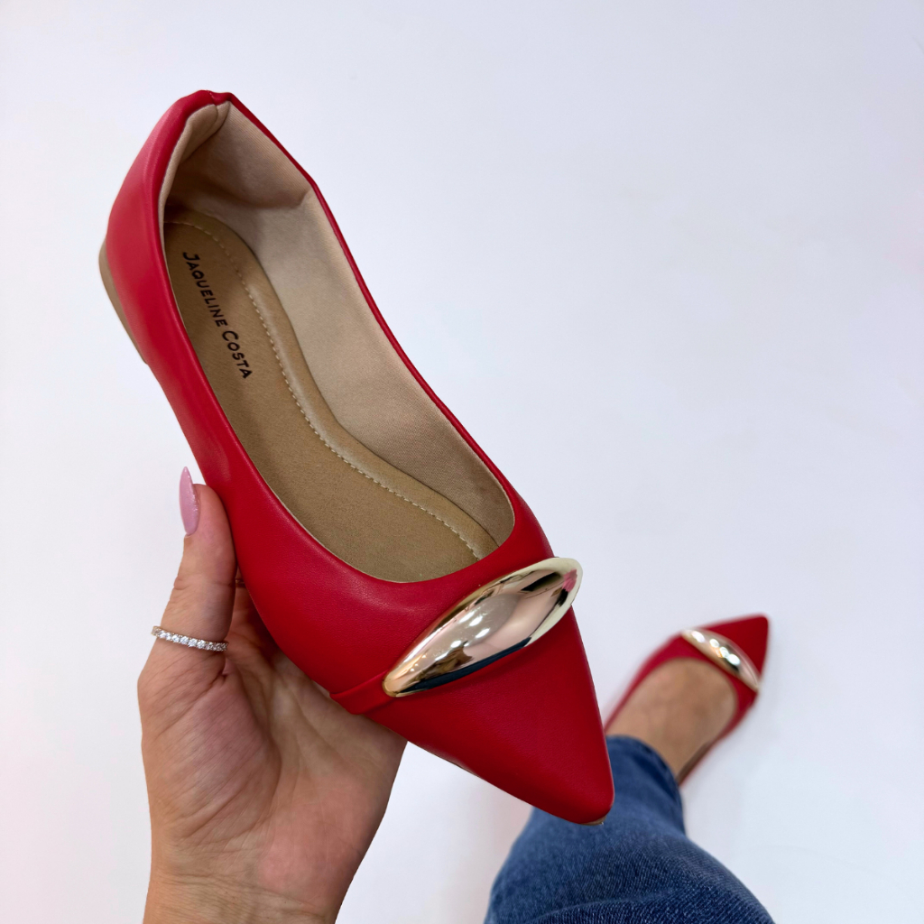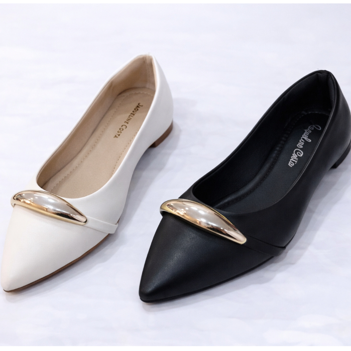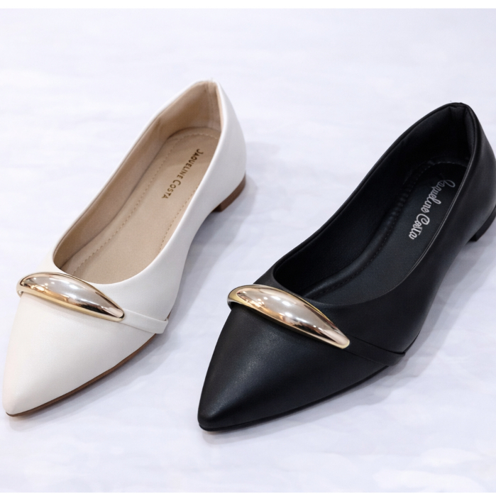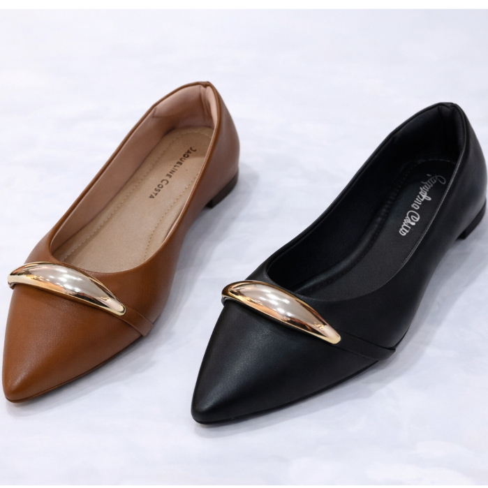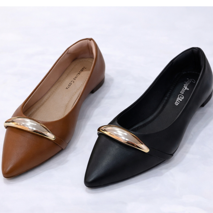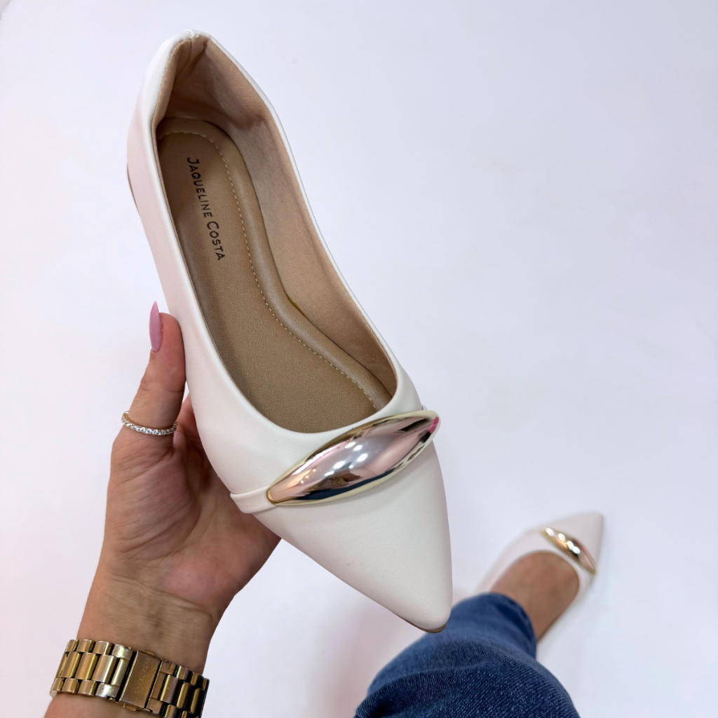 Kit 02 Pares Sapatilhas Feminina Bico Fino Casual Luxo Confortável Detalhe Dourado Jaqueline Costa