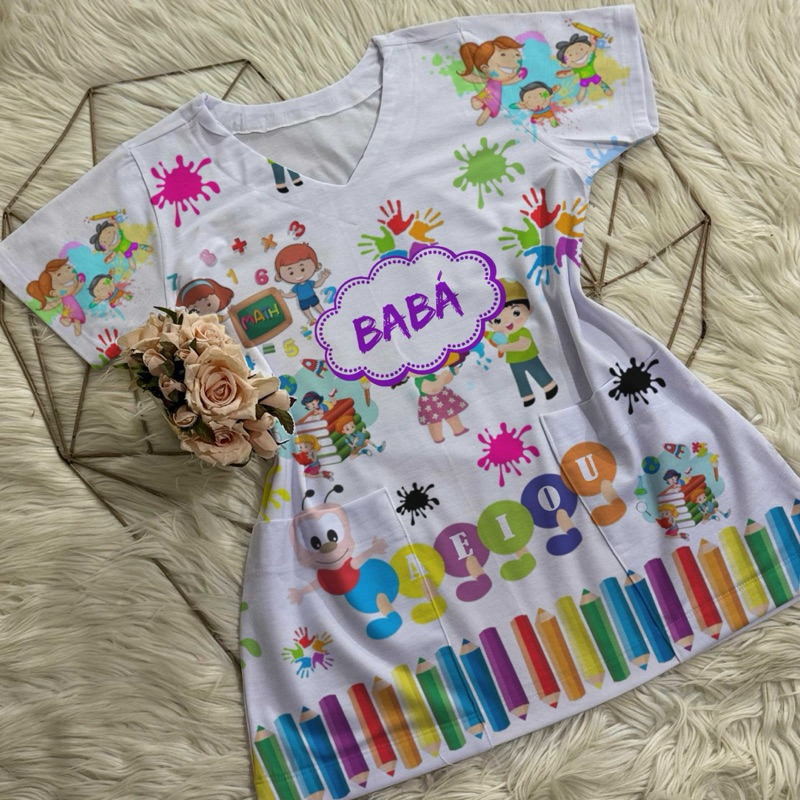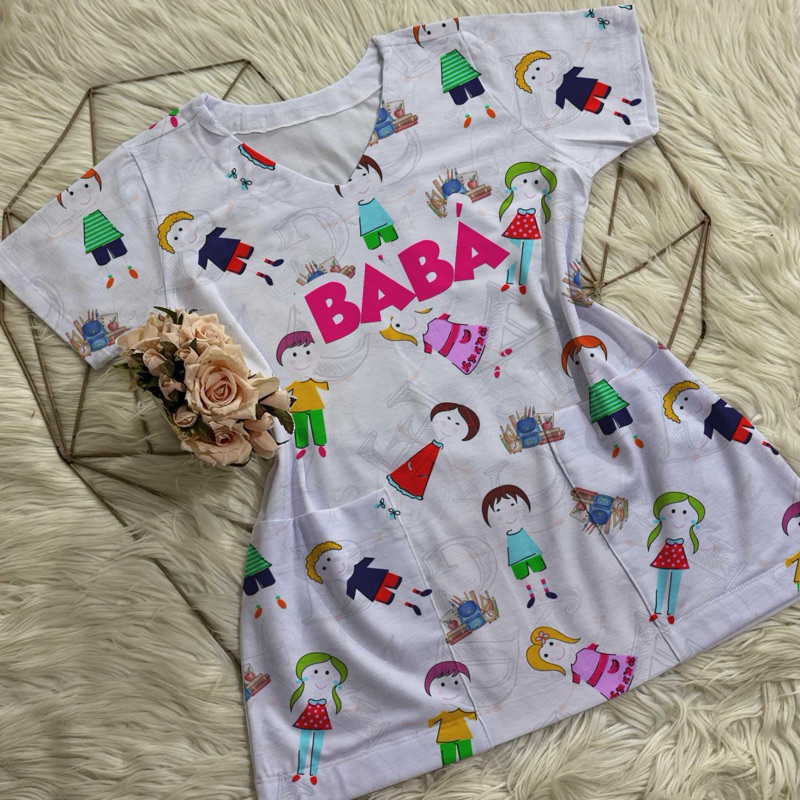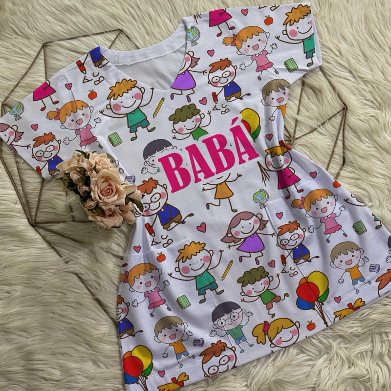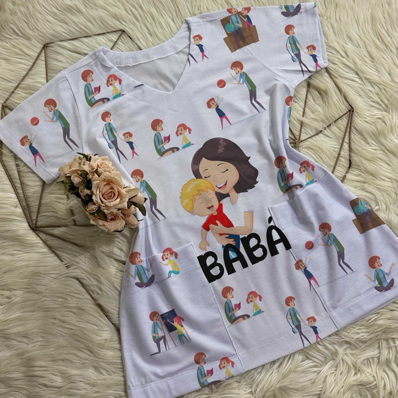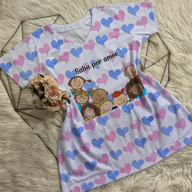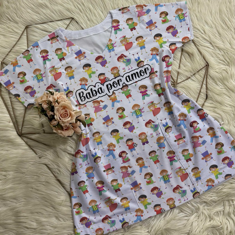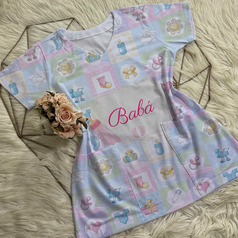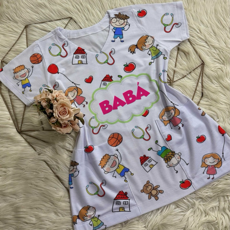 Bata com bolso/Scrub/Jaleco/Pijama cirúrgico/Babá/Cuidadora
