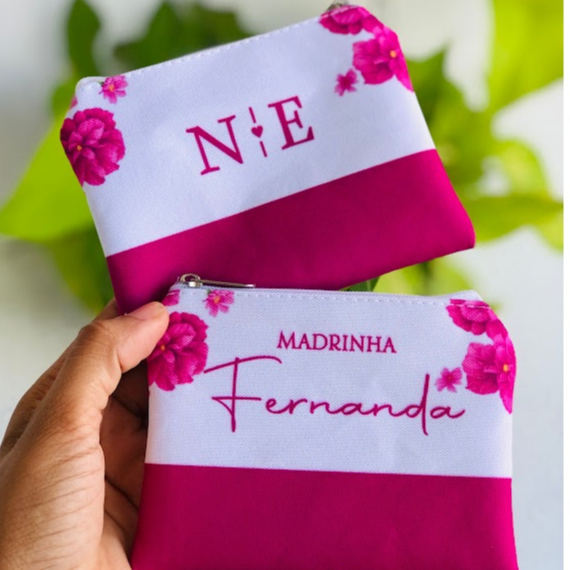 4 Bolsas Necessaire Slim Personalizada c/ Nome 20x14cm Varias cores Fúcsia Verde Oliva Terracota