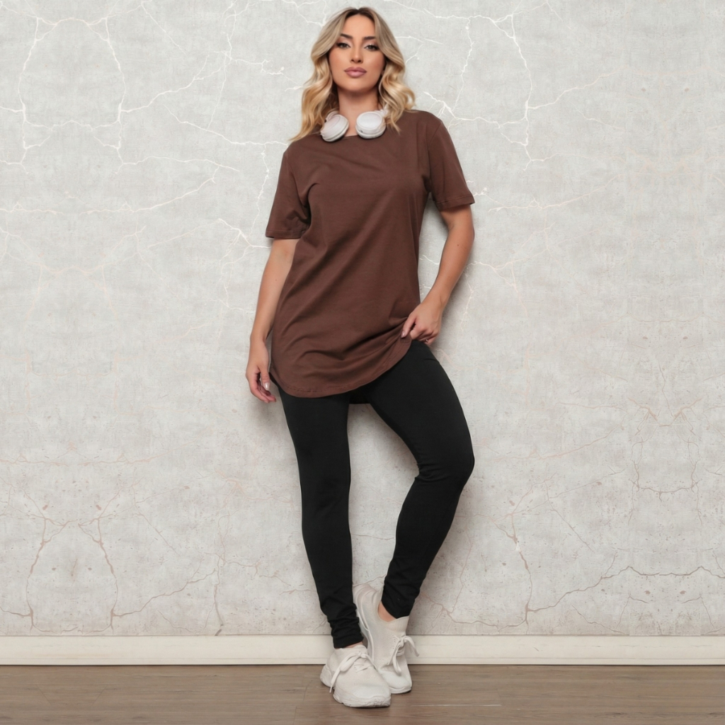 Blusa Feminina Longline Tapa Bumbum Cobre Legging Lisa Academia Fitness