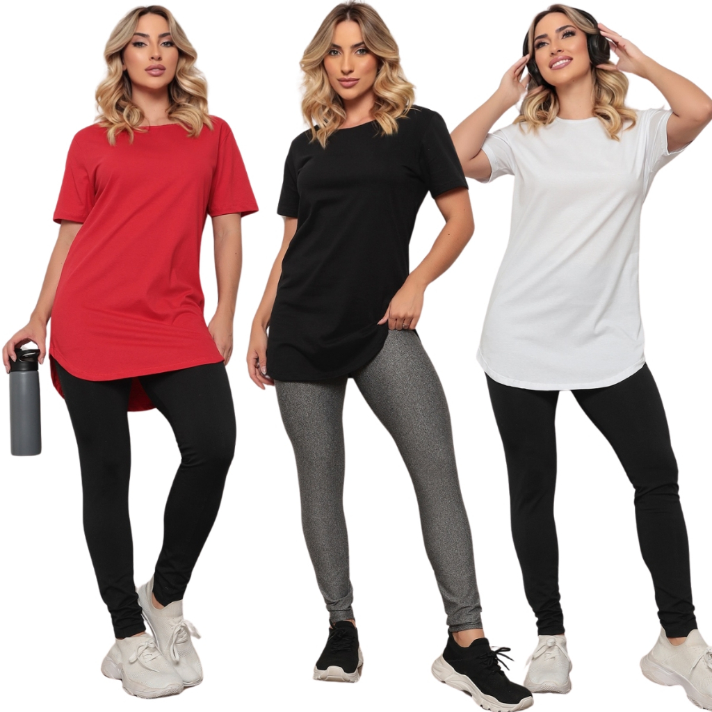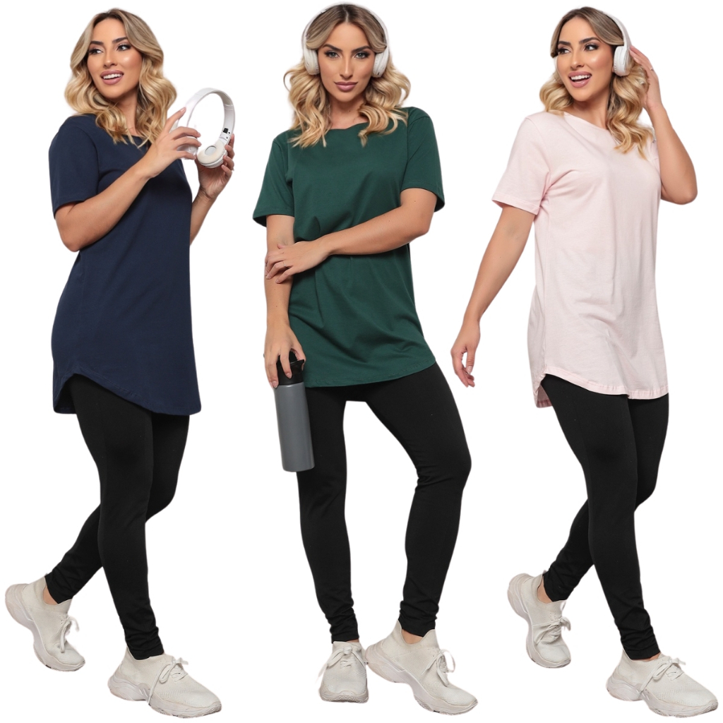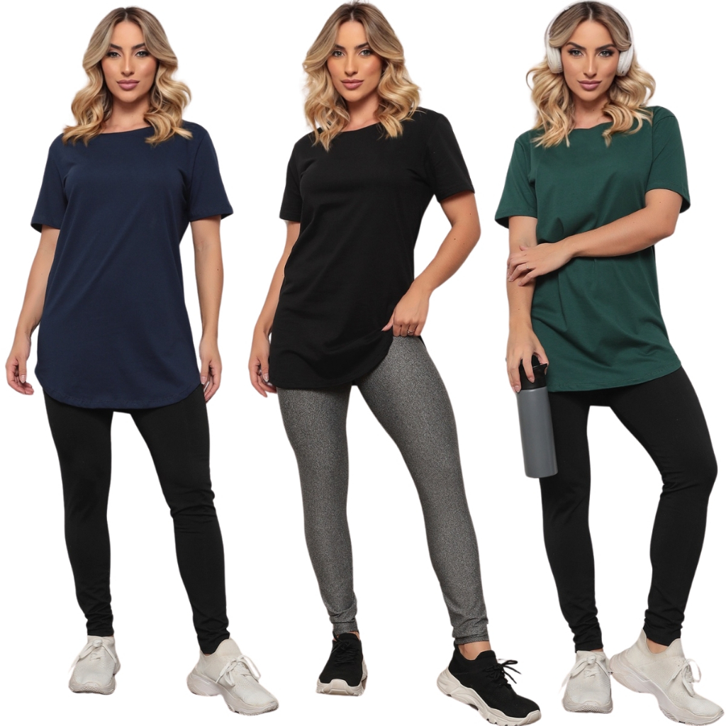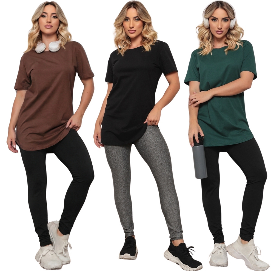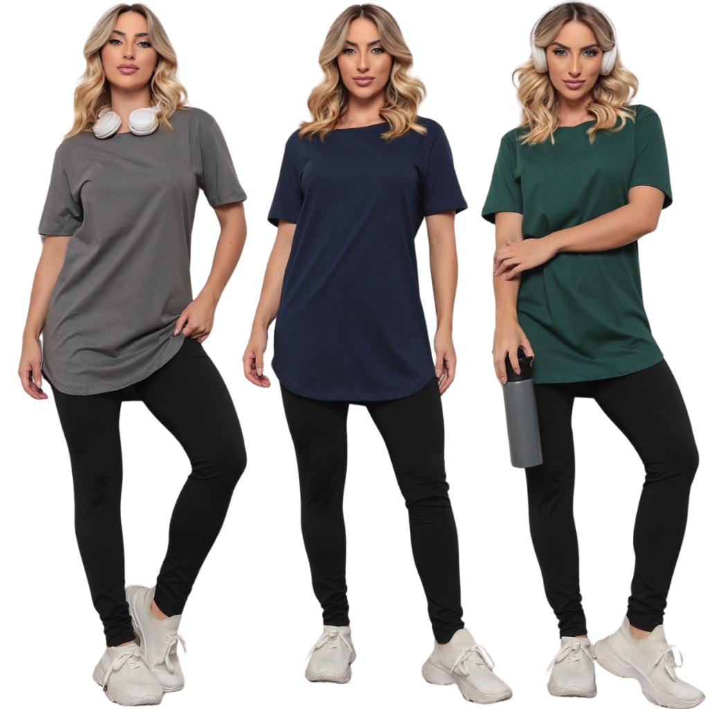 Kit 3 Blusas Feminina Longline Tapa Bumbum Cobre Legging Lisa Academia Fitness