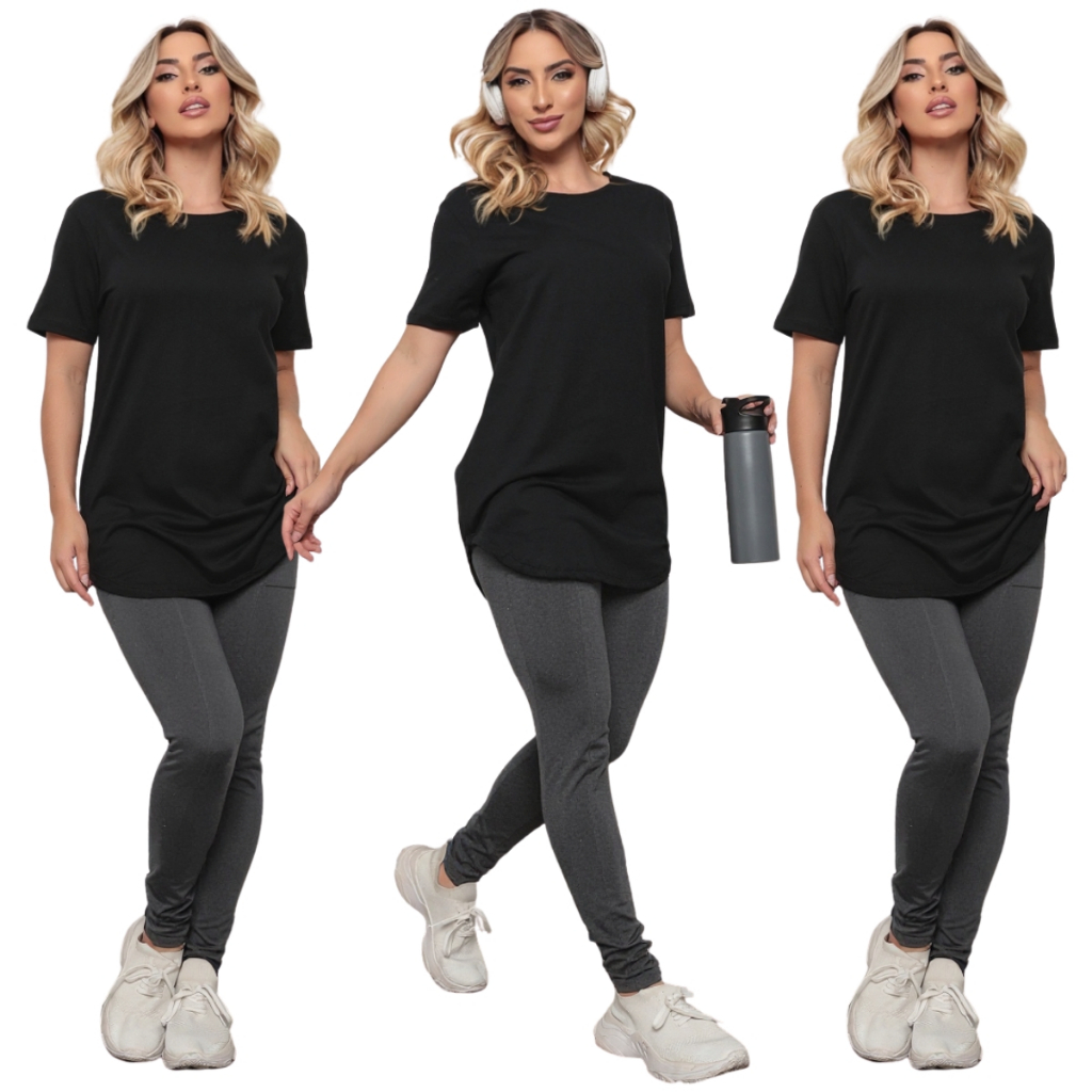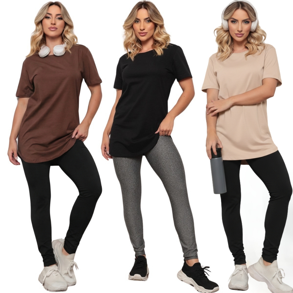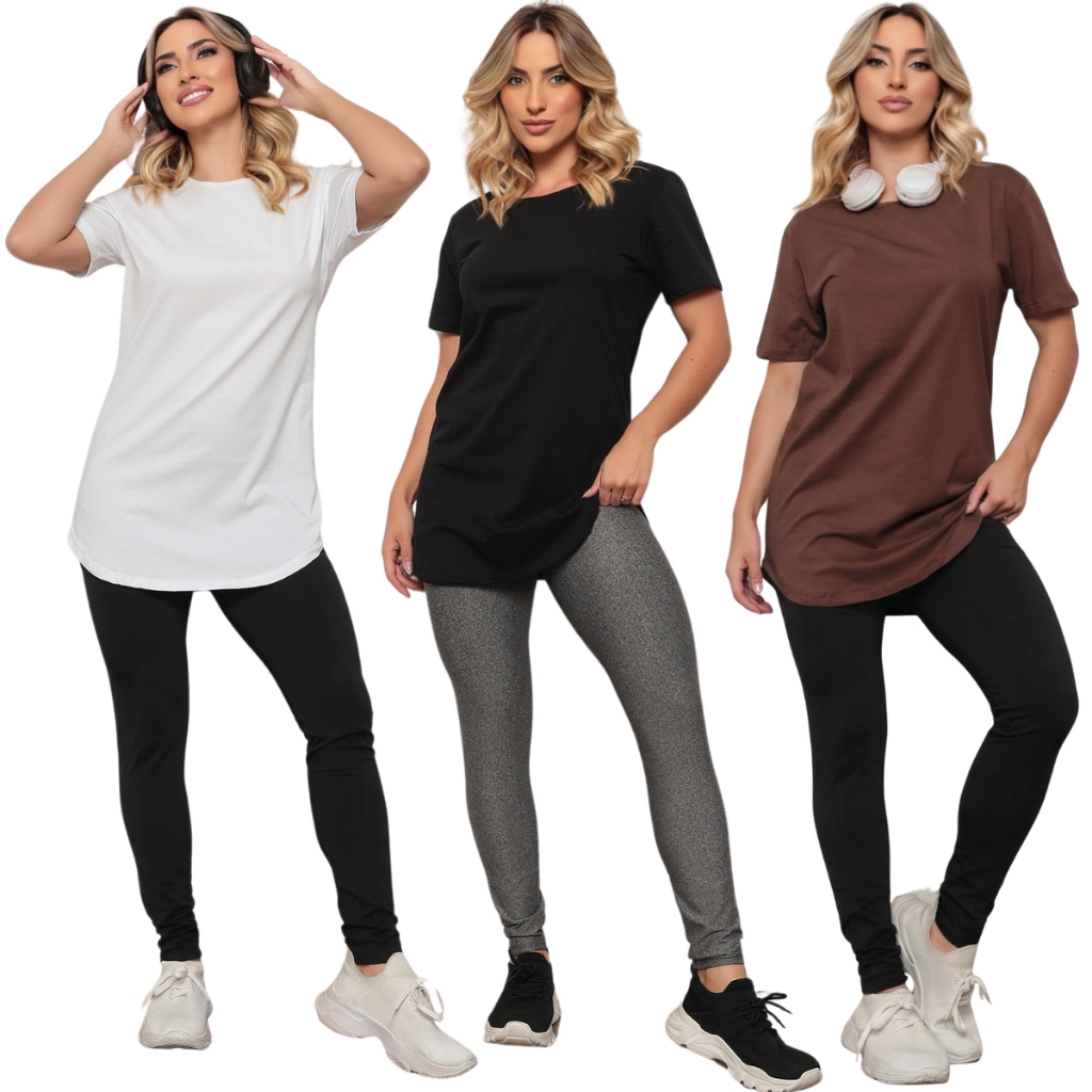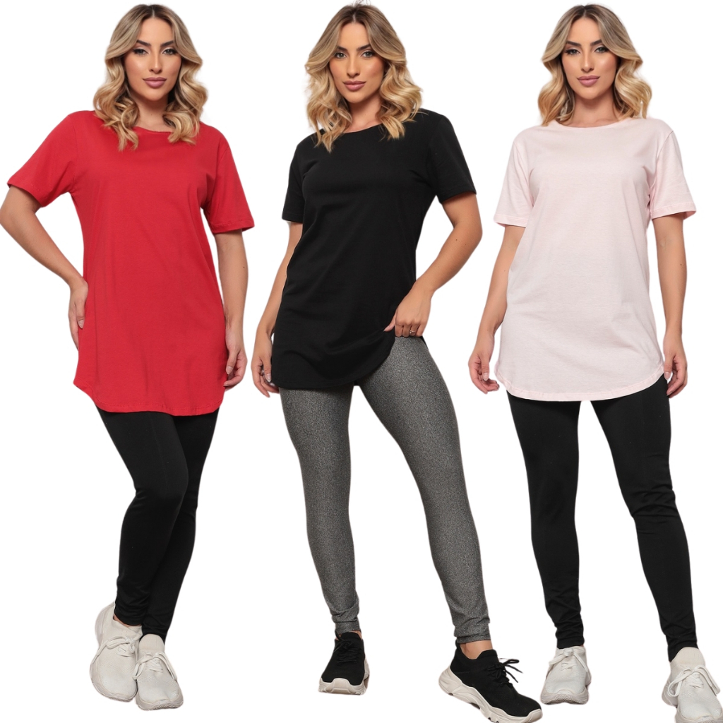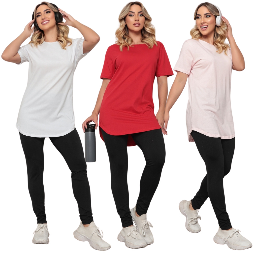 Kit 3 Blusas Feminina Longline Tapa Bumbum Cobre Legging Lisa Academia Fitness