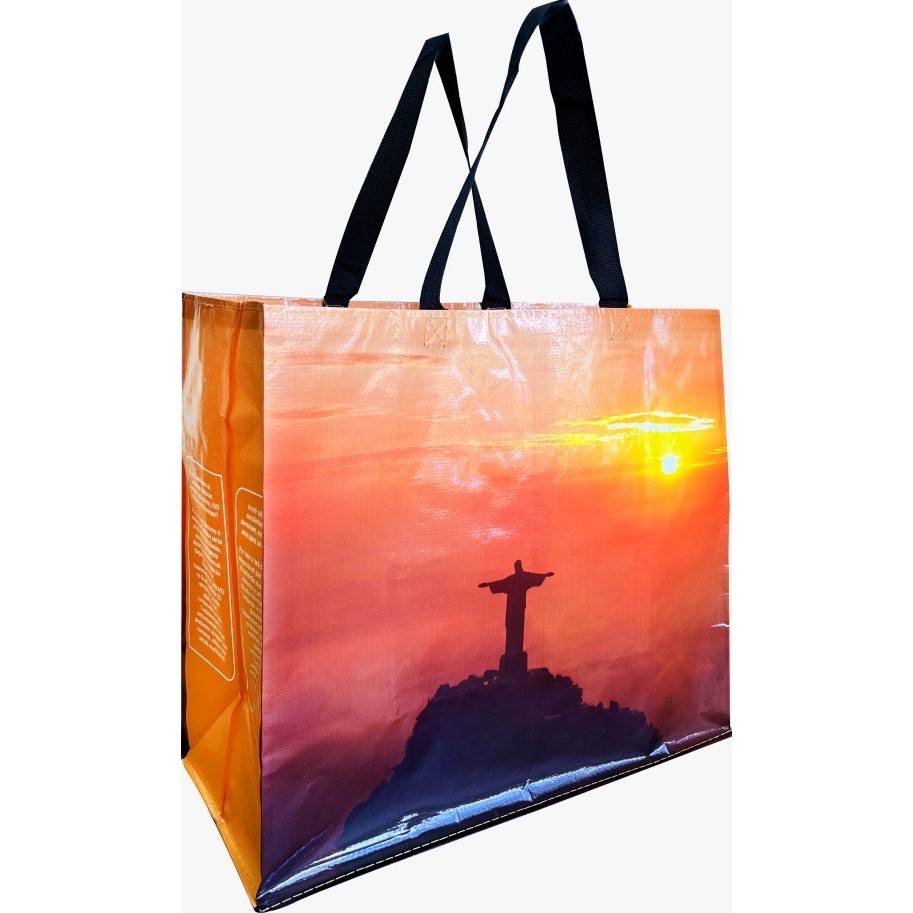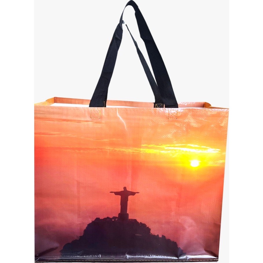 Kit 10 Sacolas Reutilizáveis Ecobag 45x22x40cm 12cm Modelo Variados Cristo Redentor Frutas Biodegradável Grande