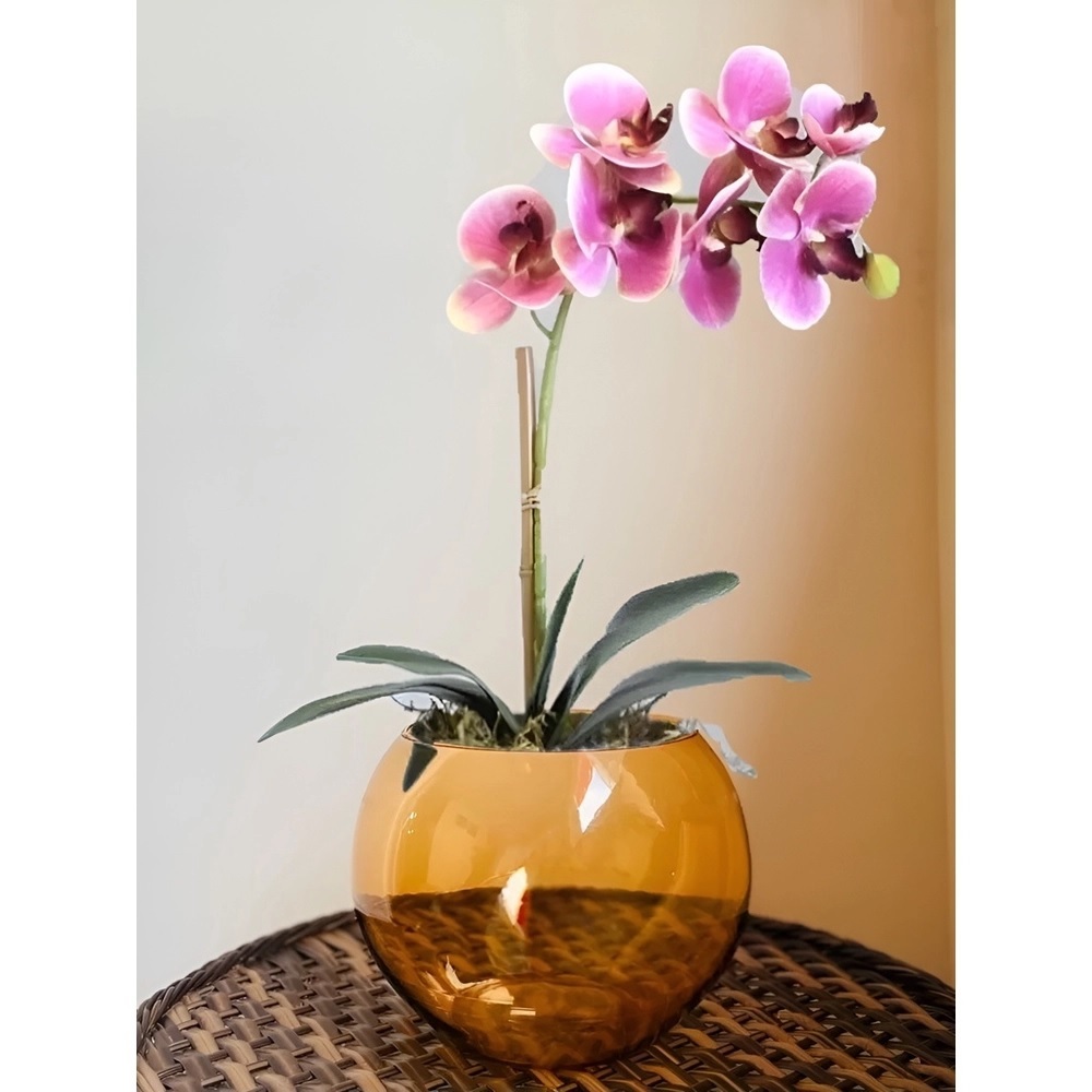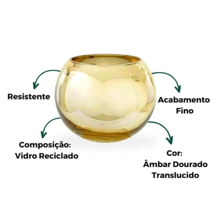 Vaso Aquário Redondo 4l Vidro Reciclado Âmbar Dourado Decor