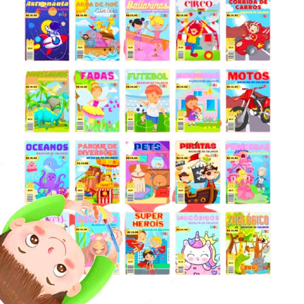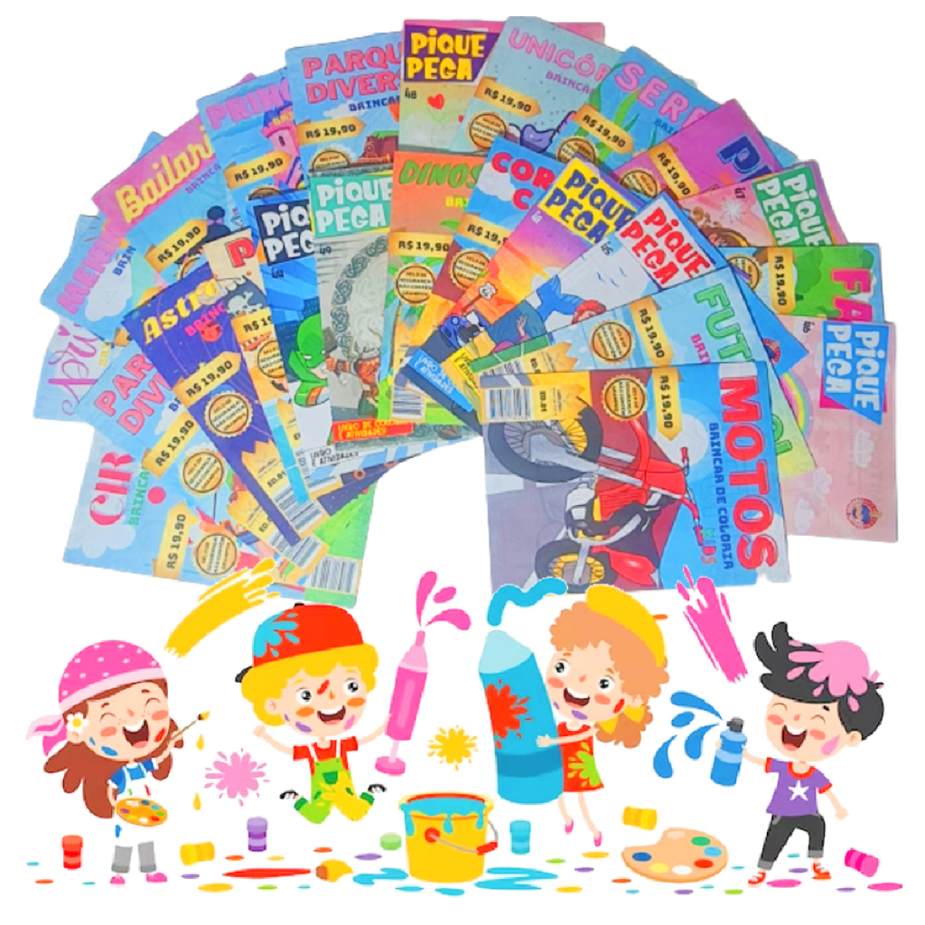 Kit 30 Revistinha Livro de Colorir + 30 Cx Giz de Cera Mini 5 Cores P/ Kit Festa Lembrancinha