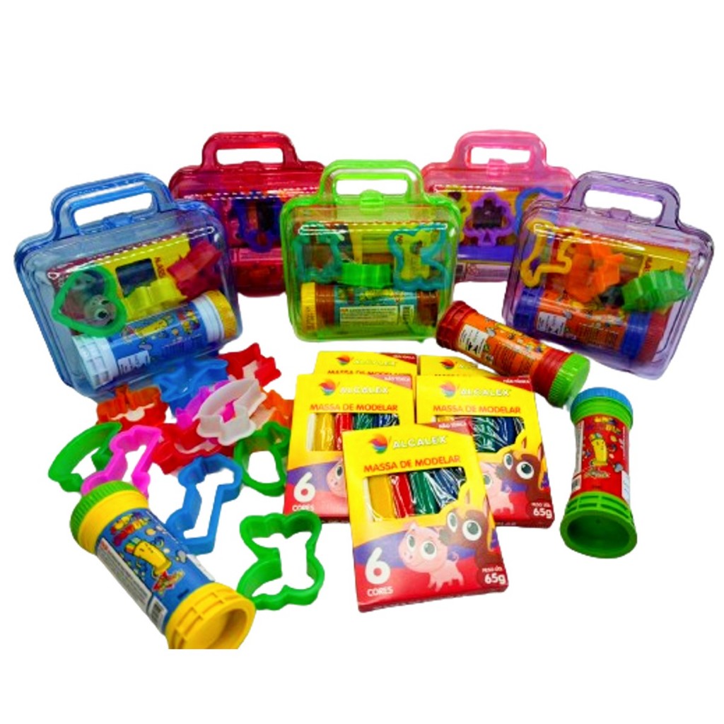 Kit 12 Massinha Modelar + 12 Bolha Sabão + 24 Cortador Massinha + 12 Maletinha Acrílico Lembrancinha