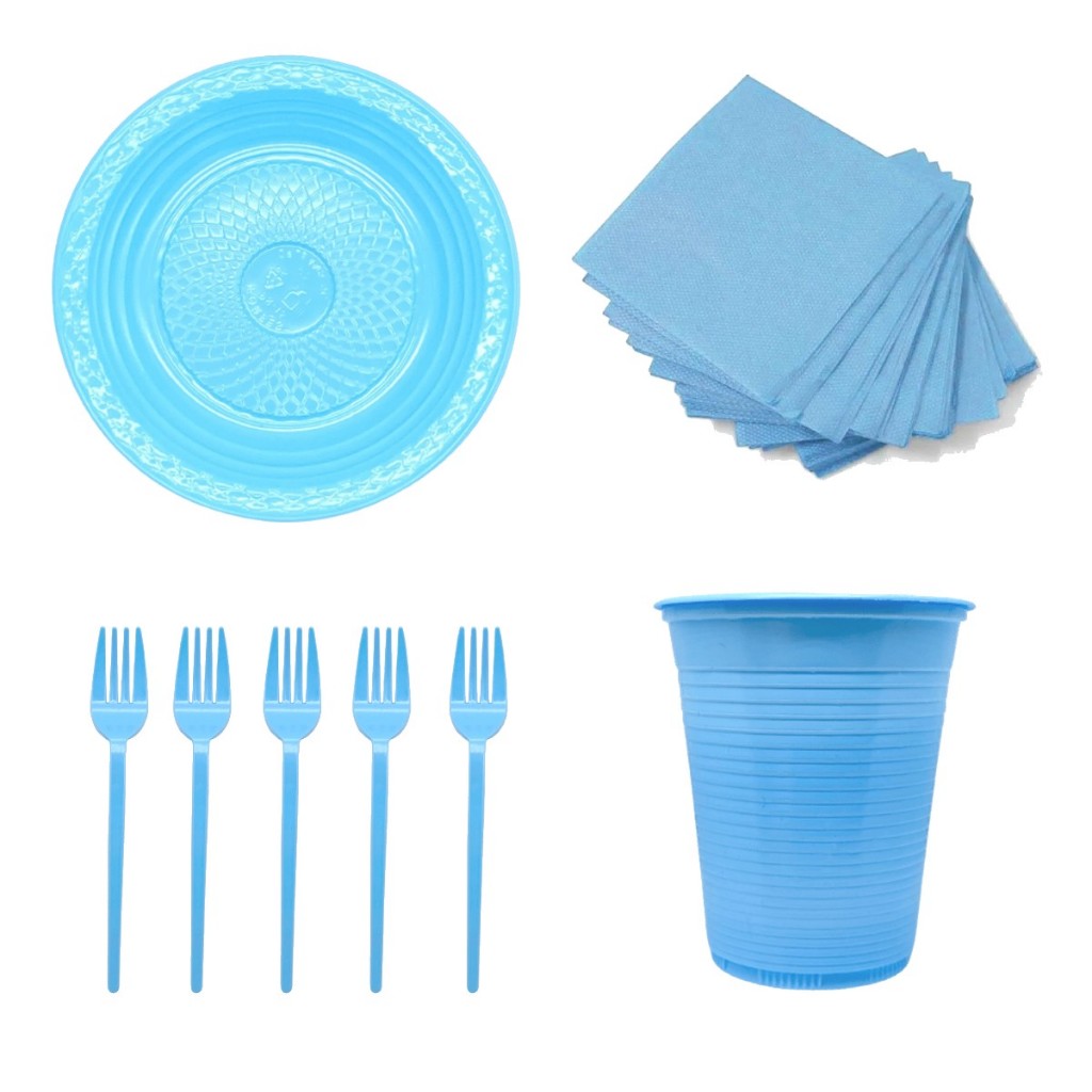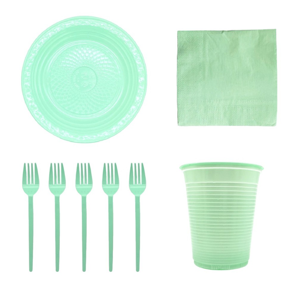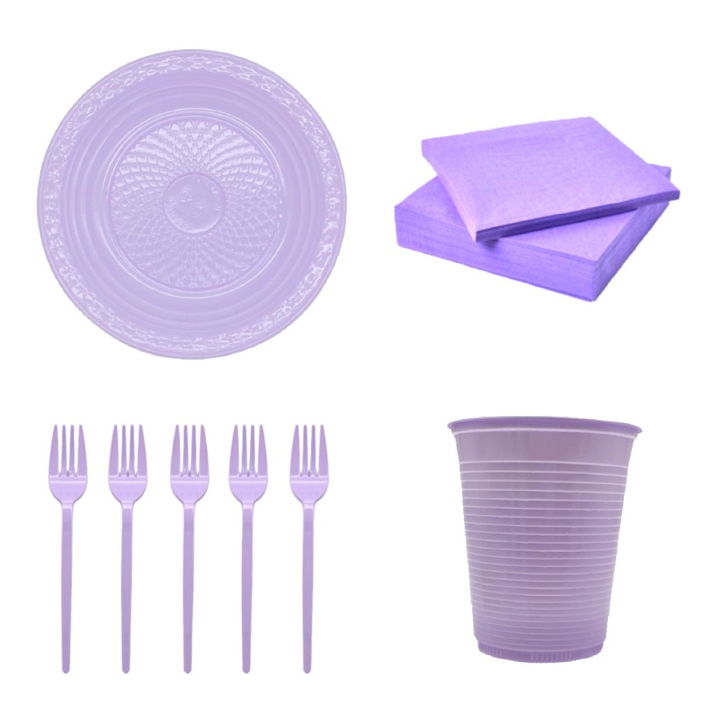 Kit Festa 200 Itens Descartáveis 50 Copo + 50 Garfinho + 50 Guardanapo + 50 Pratinho Candy Colors