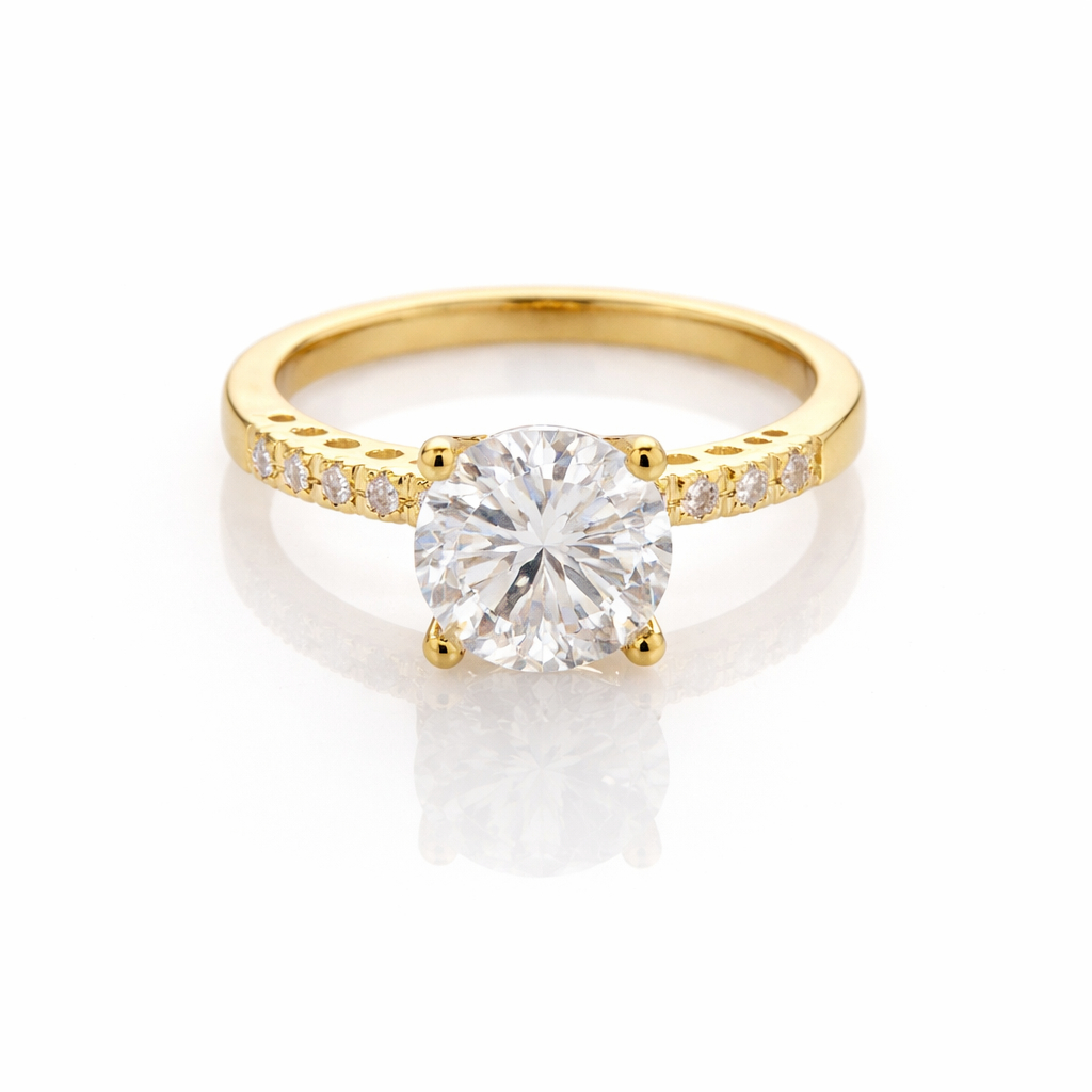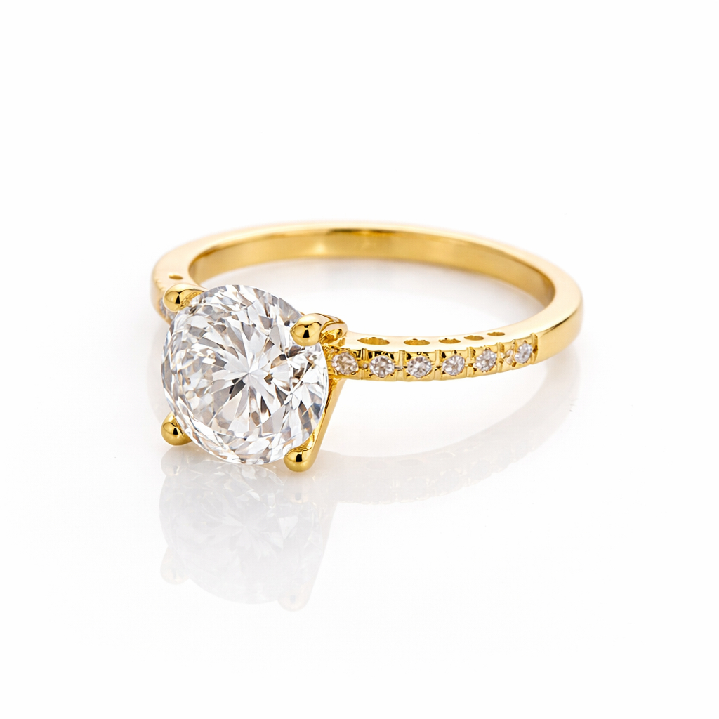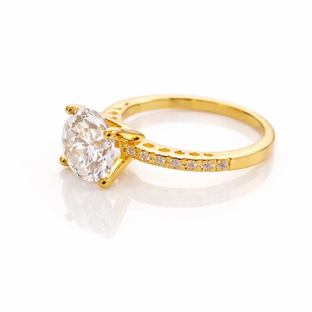 Anel Noivado Princesa Zirconia Aro Cravejado Banhado a Ouro