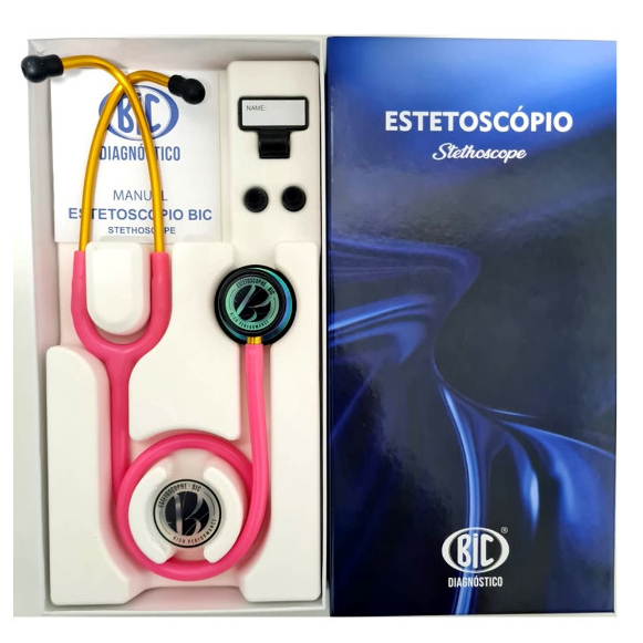 Estetoscópio Bic Eternity III Rosa Gold Rainbow Excelente Ausculta Adulto e Pediátrico e Garantia de 5 anos