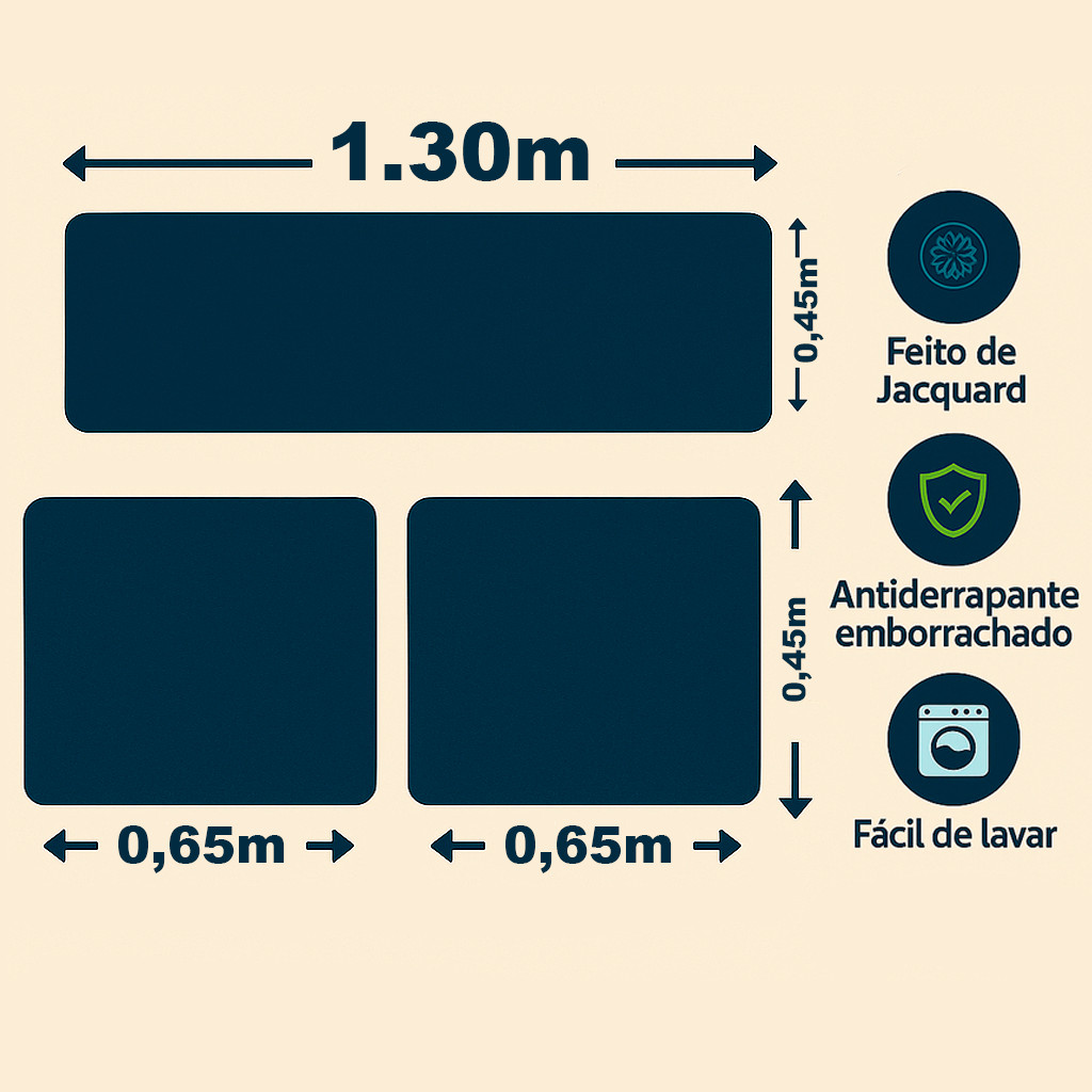 Passadeira Tapete Para Cozinha Antiderrapante 3 Peças Moderno Cores Diversas