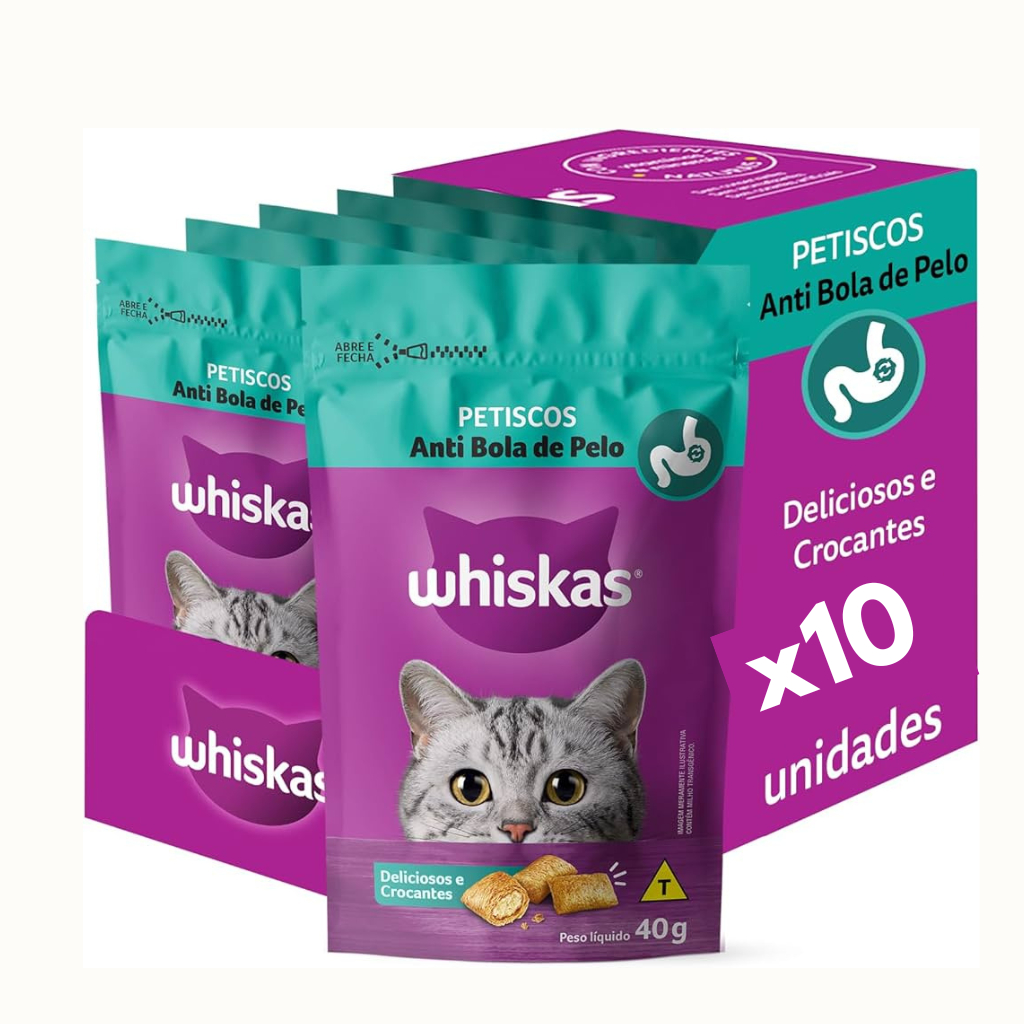 WHISKAS TEMPTATIONS ANTI BOLA DE PÊLO GATO 80G KIT 02/06/10 UND