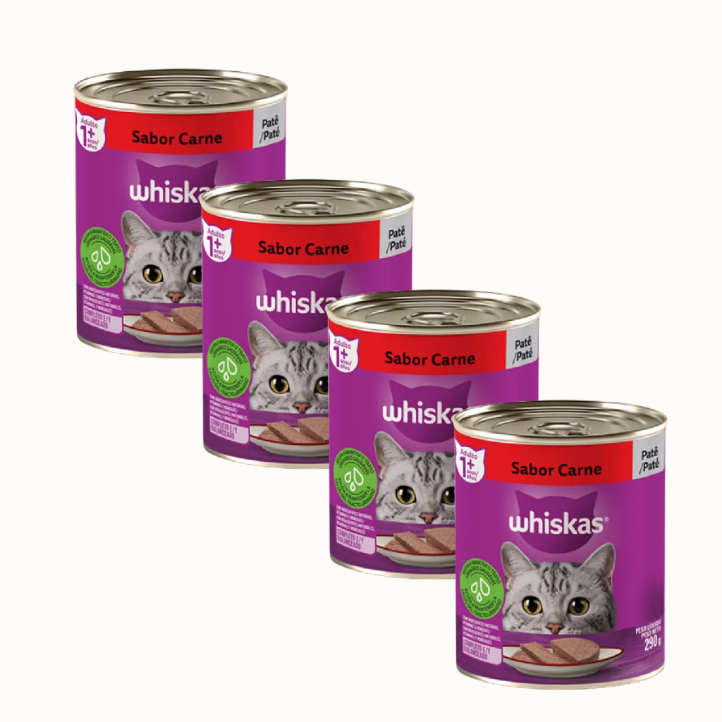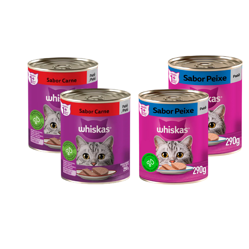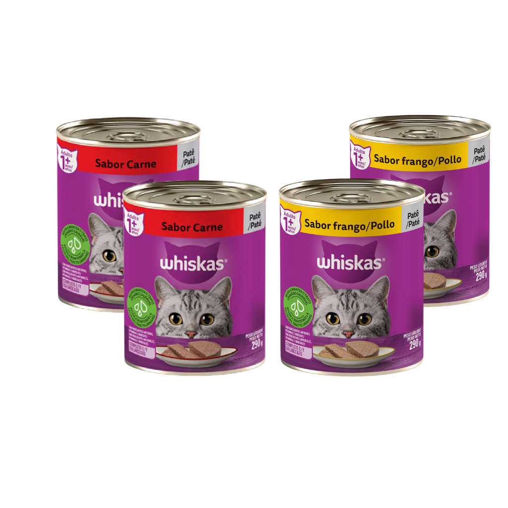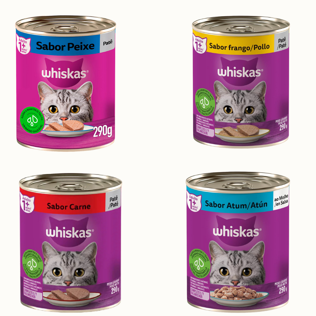 LATA PATÊ WHISKAS GATO 290G SABOR A SUA ESCOLHA KIT 04 UN