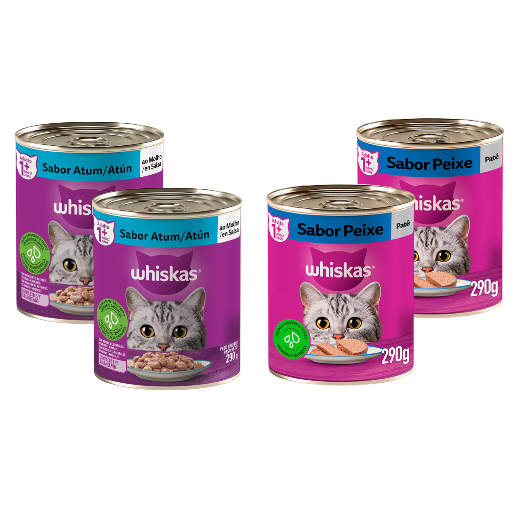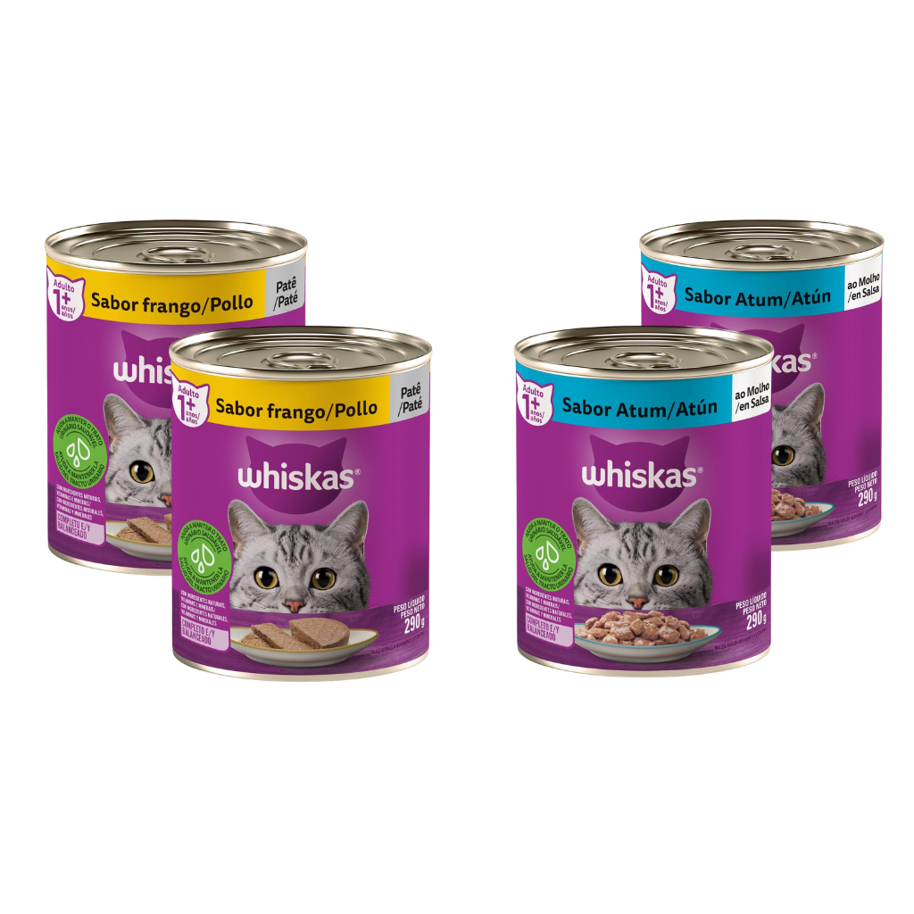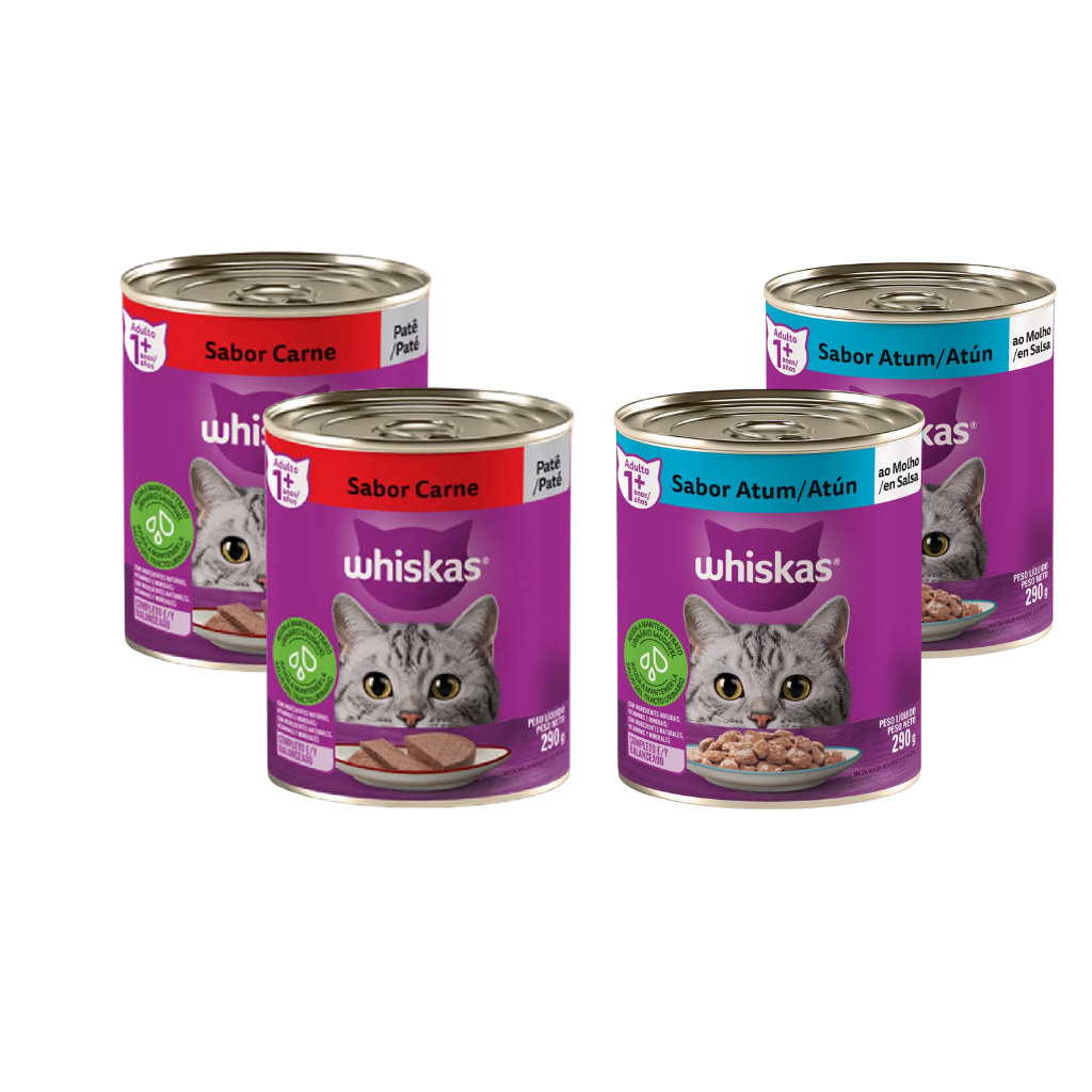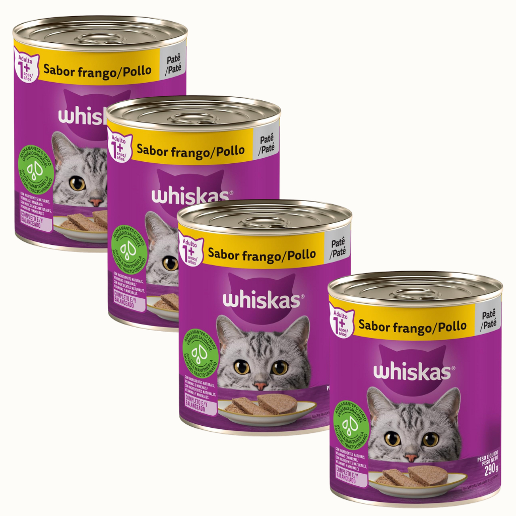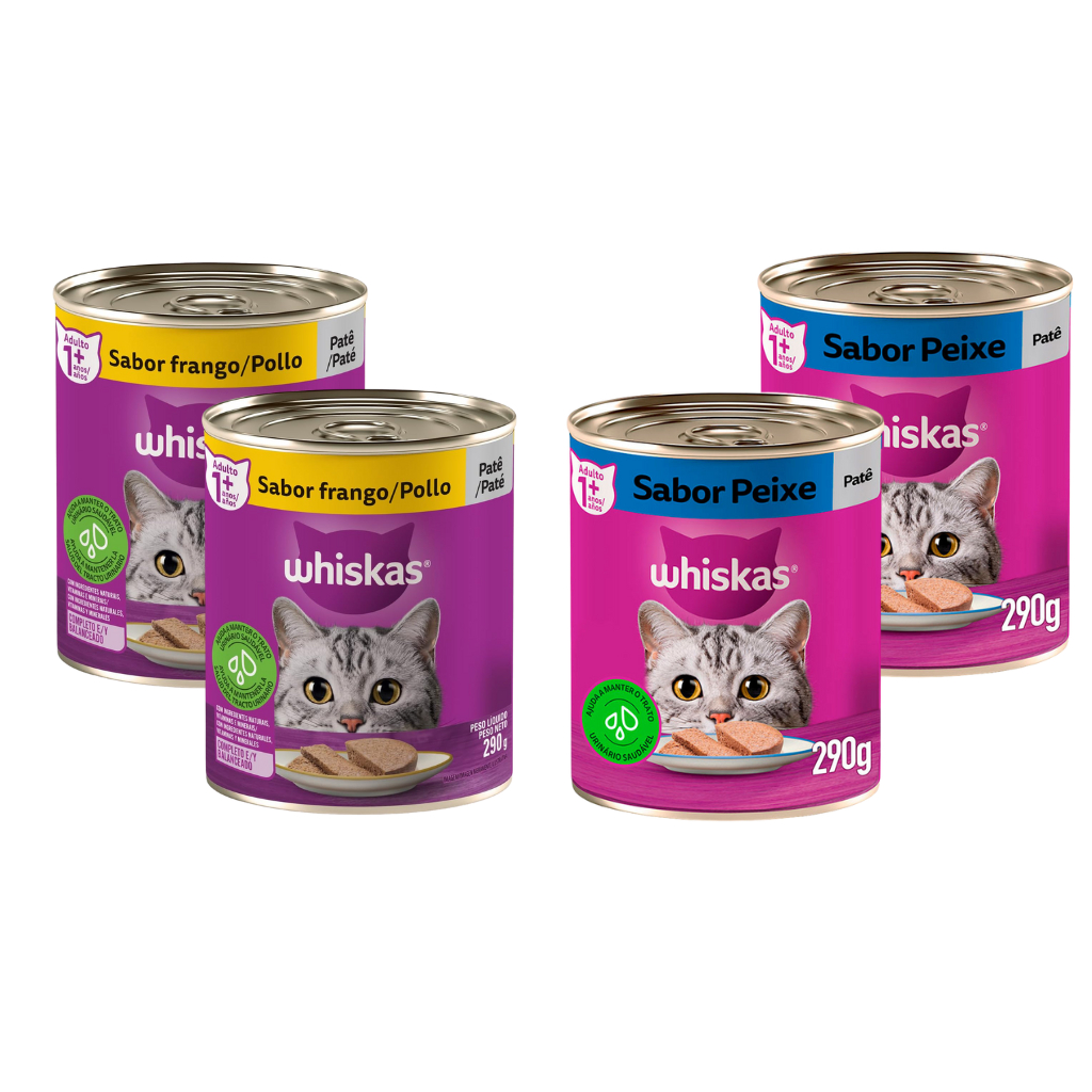 LATA PATÊ WHISKAS GATO 290G SABOR A SUA ESCOLHA KIT 04 UN