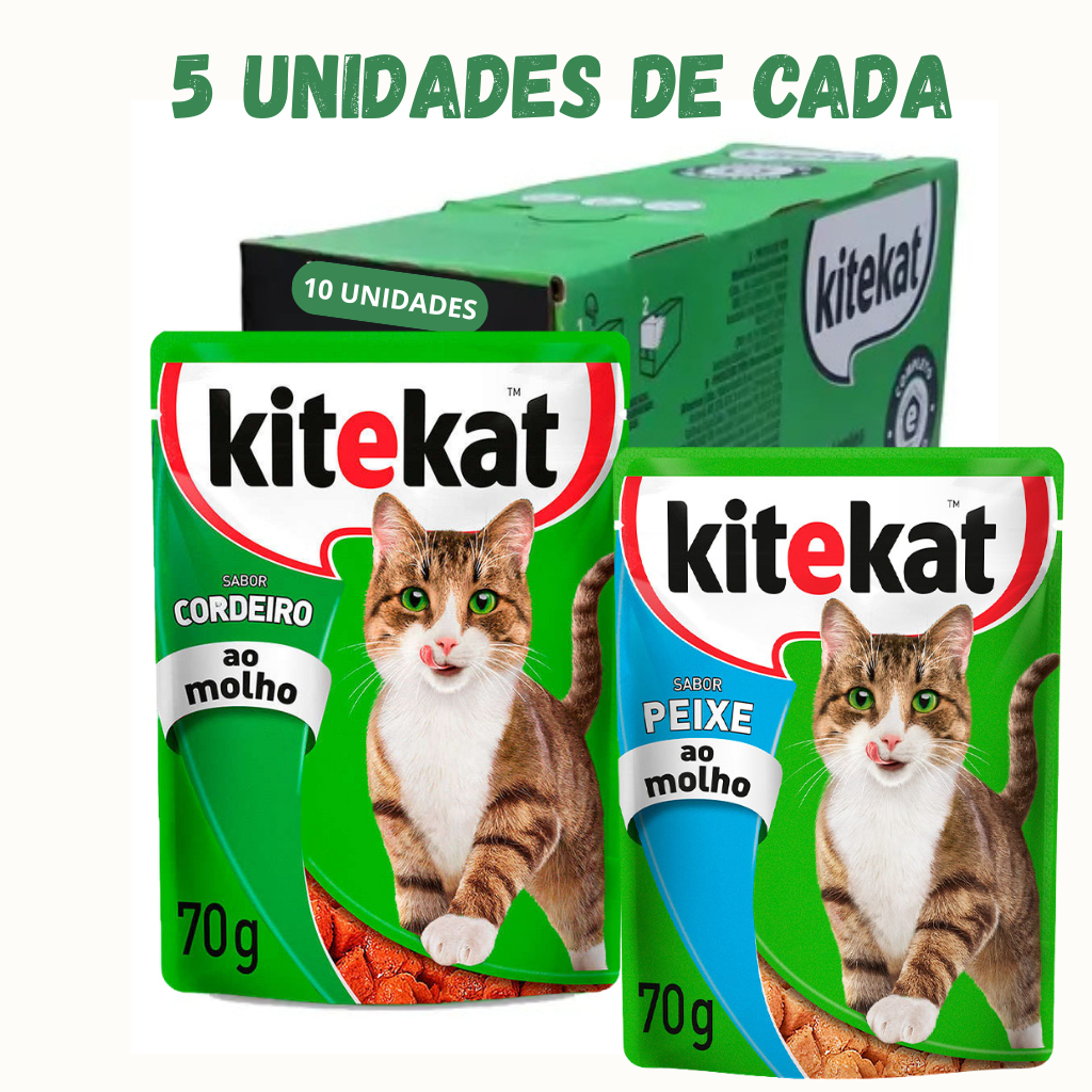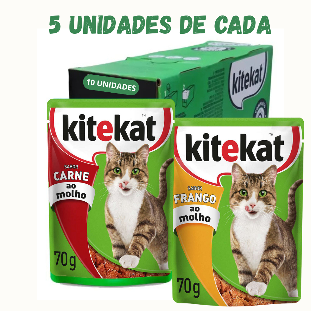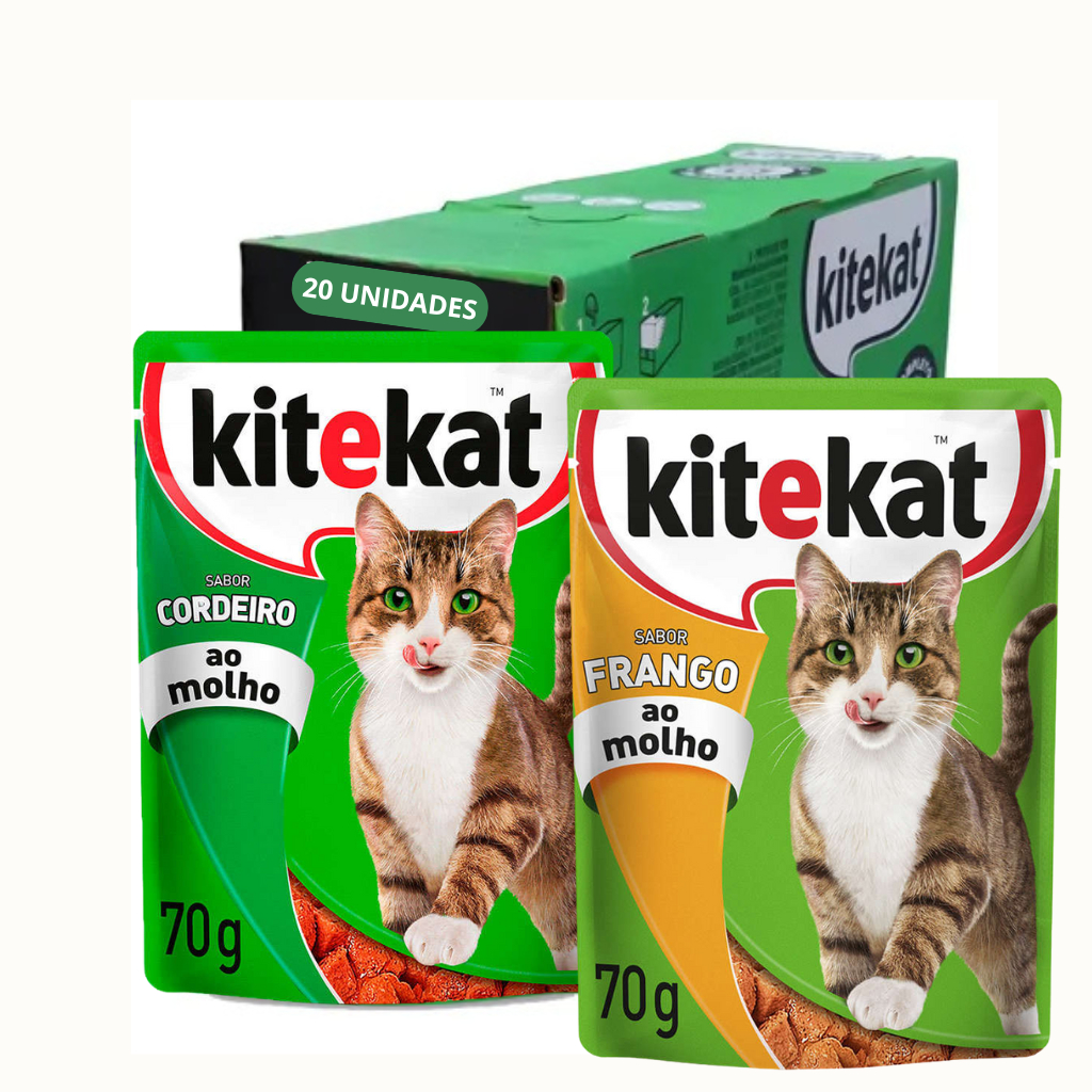 KITEKAT SACHÊ RAÇÃO ÚMIDA PARA GATOS 70G KIT 10 UND OU 20 UND MIX