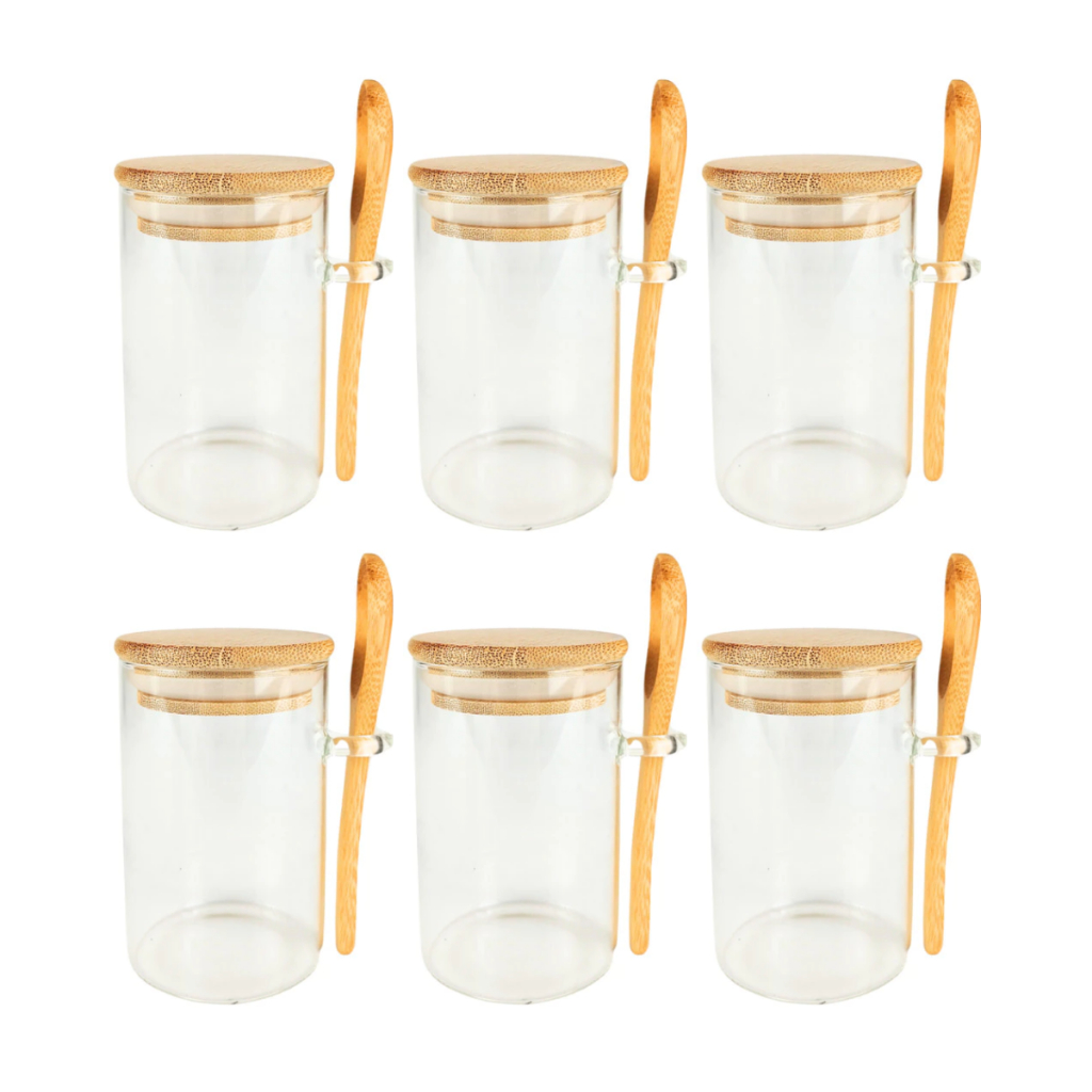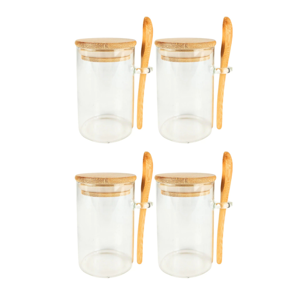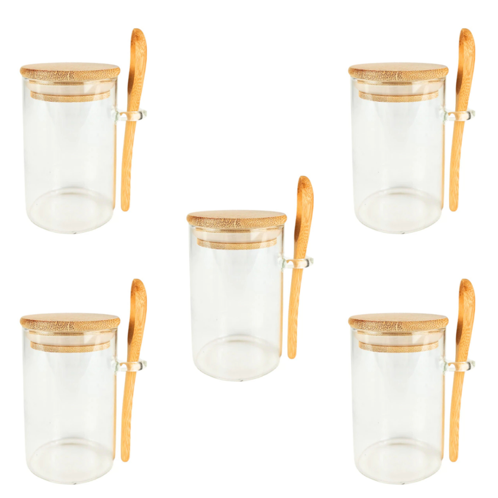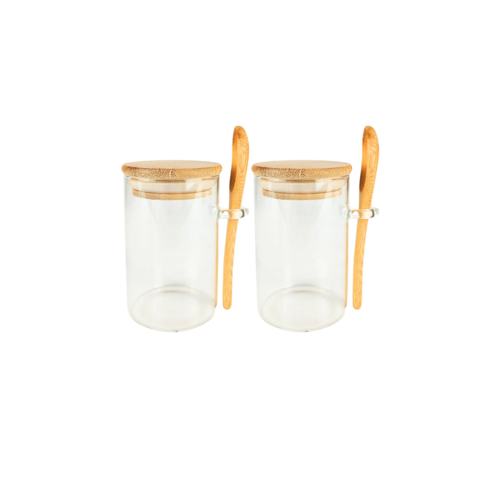 Pote Saleiro Açucareiro de Vidro Com Colher e Tampa Bambu