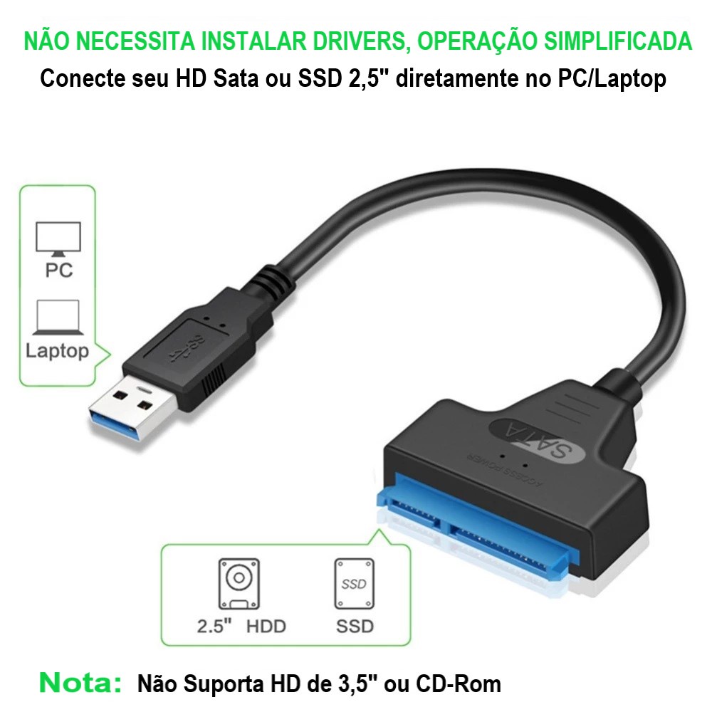 Cabo Adaptador Sata USB 3.0 Para HD e SSD 2.5