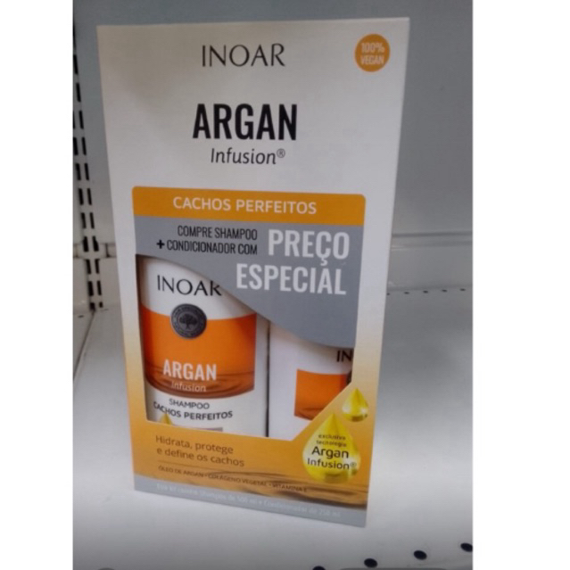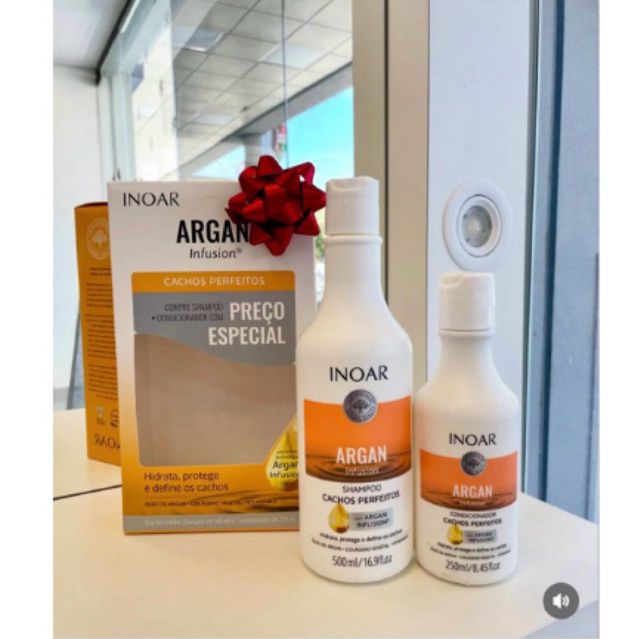 Promoção Kit Shampoo e Condicionador Inoar Argan Infusion Cachos Perfeitos 500ml + 250ml| Definição de Cachos