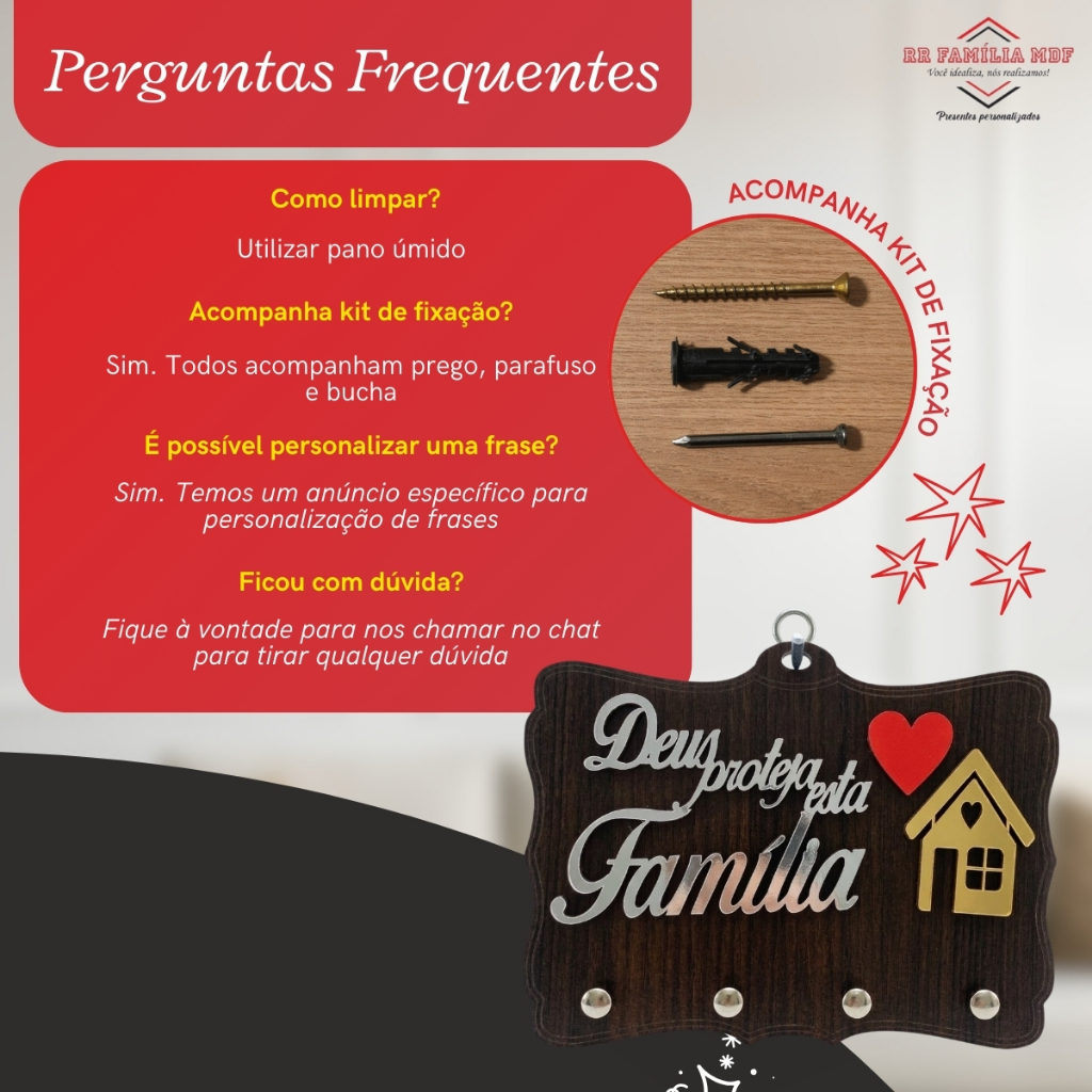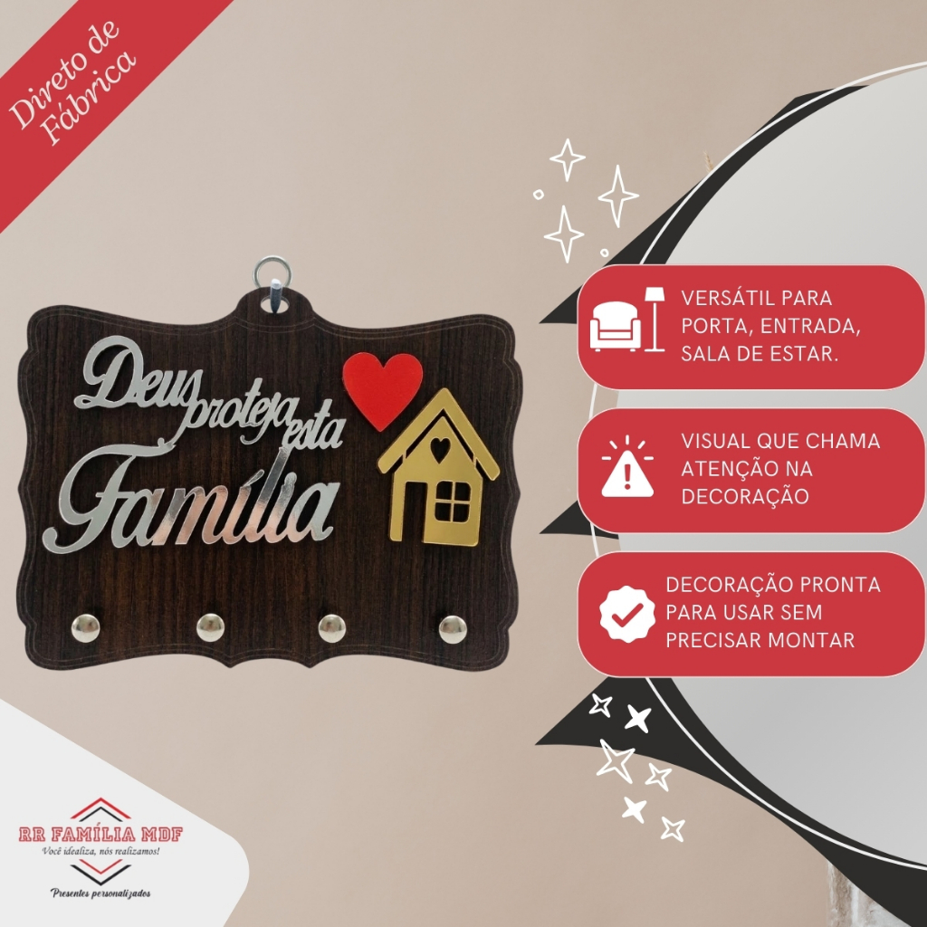 Porta chave MDF 2D alto relevo modelo DEUS PROTEJA ESTA FAMILÍA
