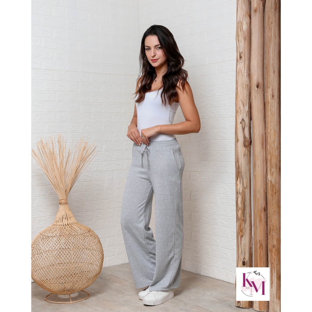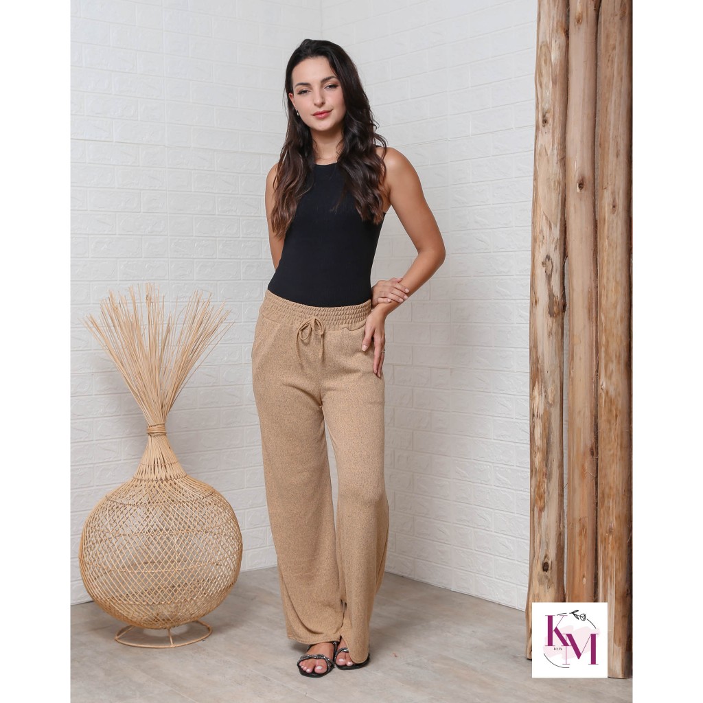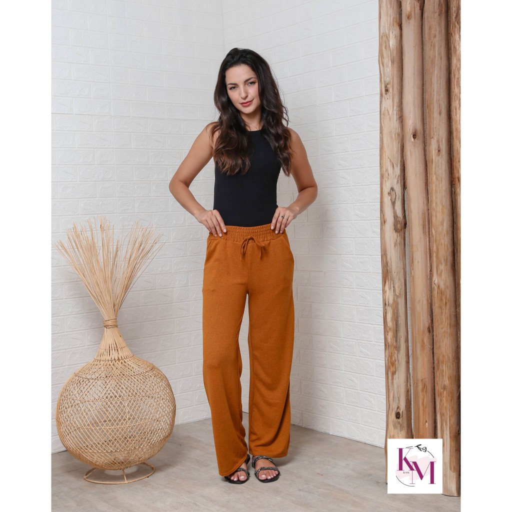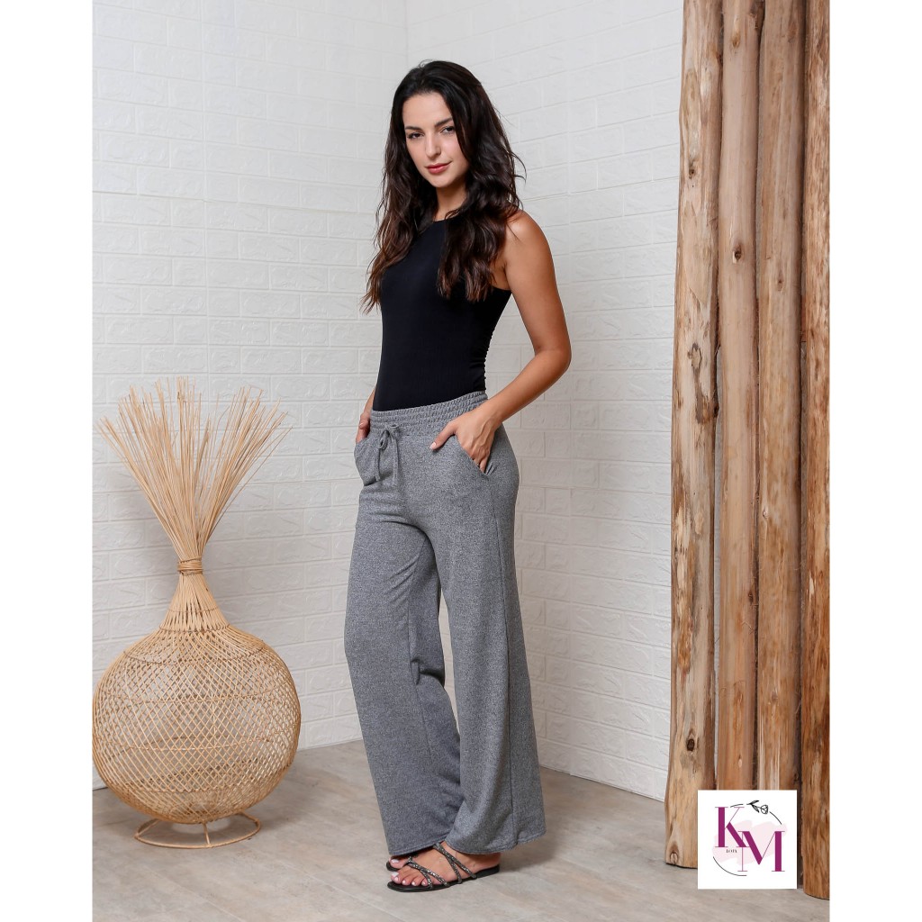 Pantalona calca Lanzinha Feminina Cintura Alta Com Bolso
