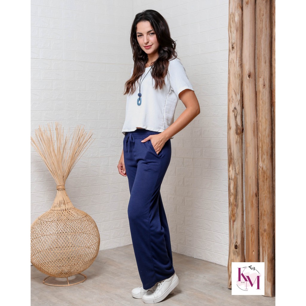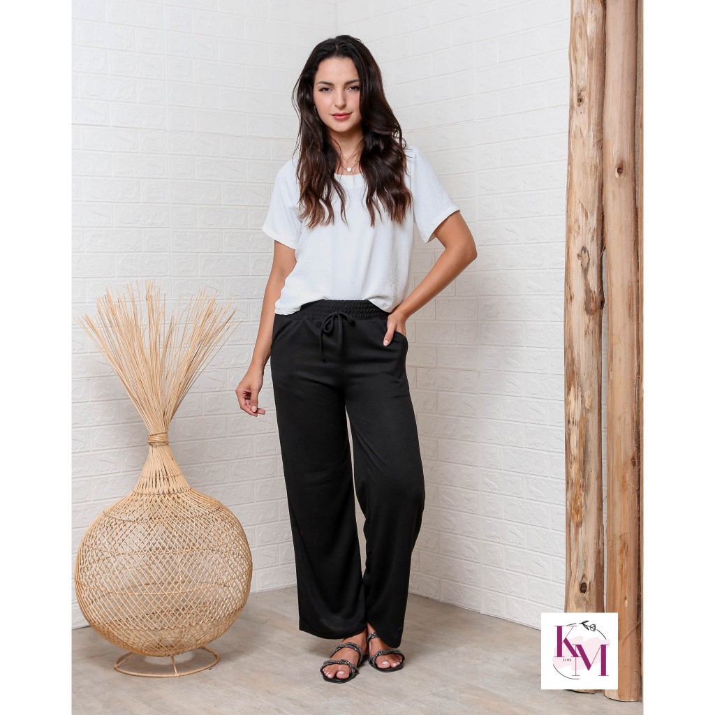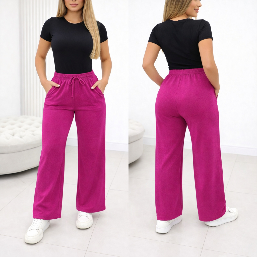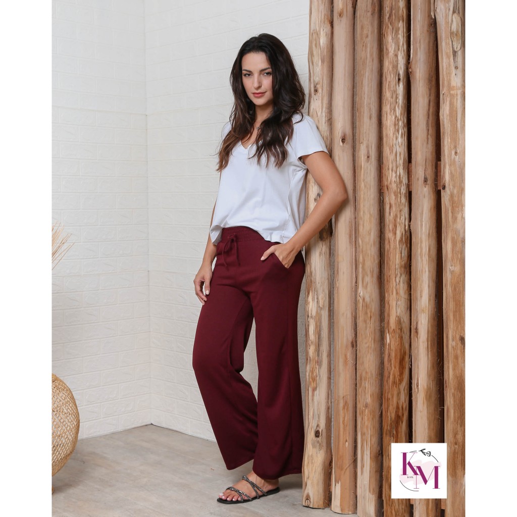 Pantalona calca Lanzinha Feminina Cintura Alta Com Bolso