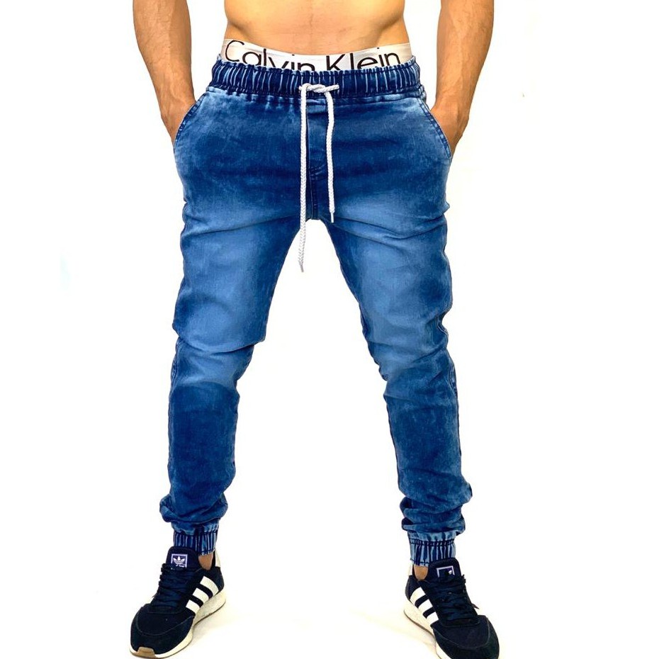 Calça Jeans Jogger Masculino Em Sarja Slim Fit Lançamento C/punho Elastico Estilo Destroyed