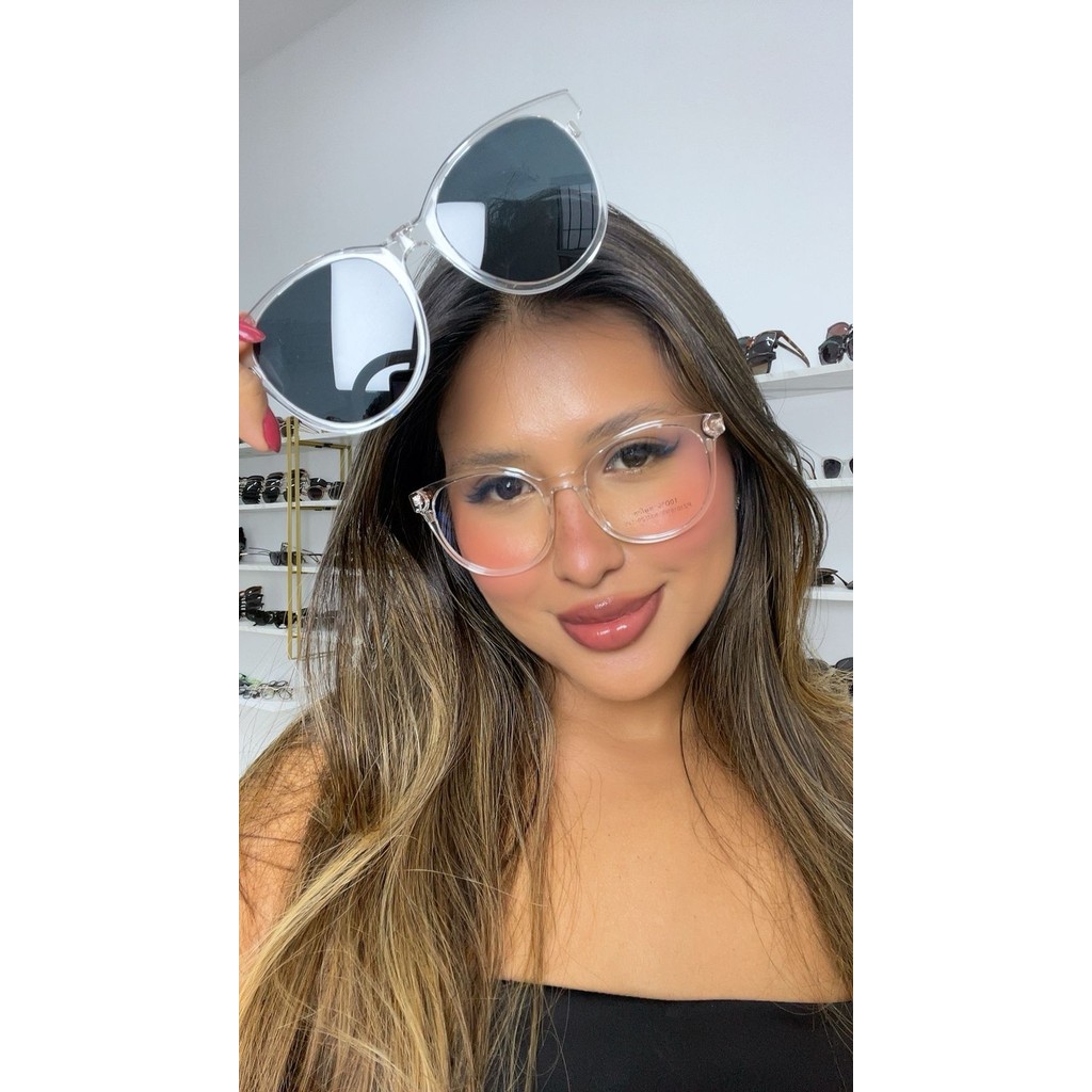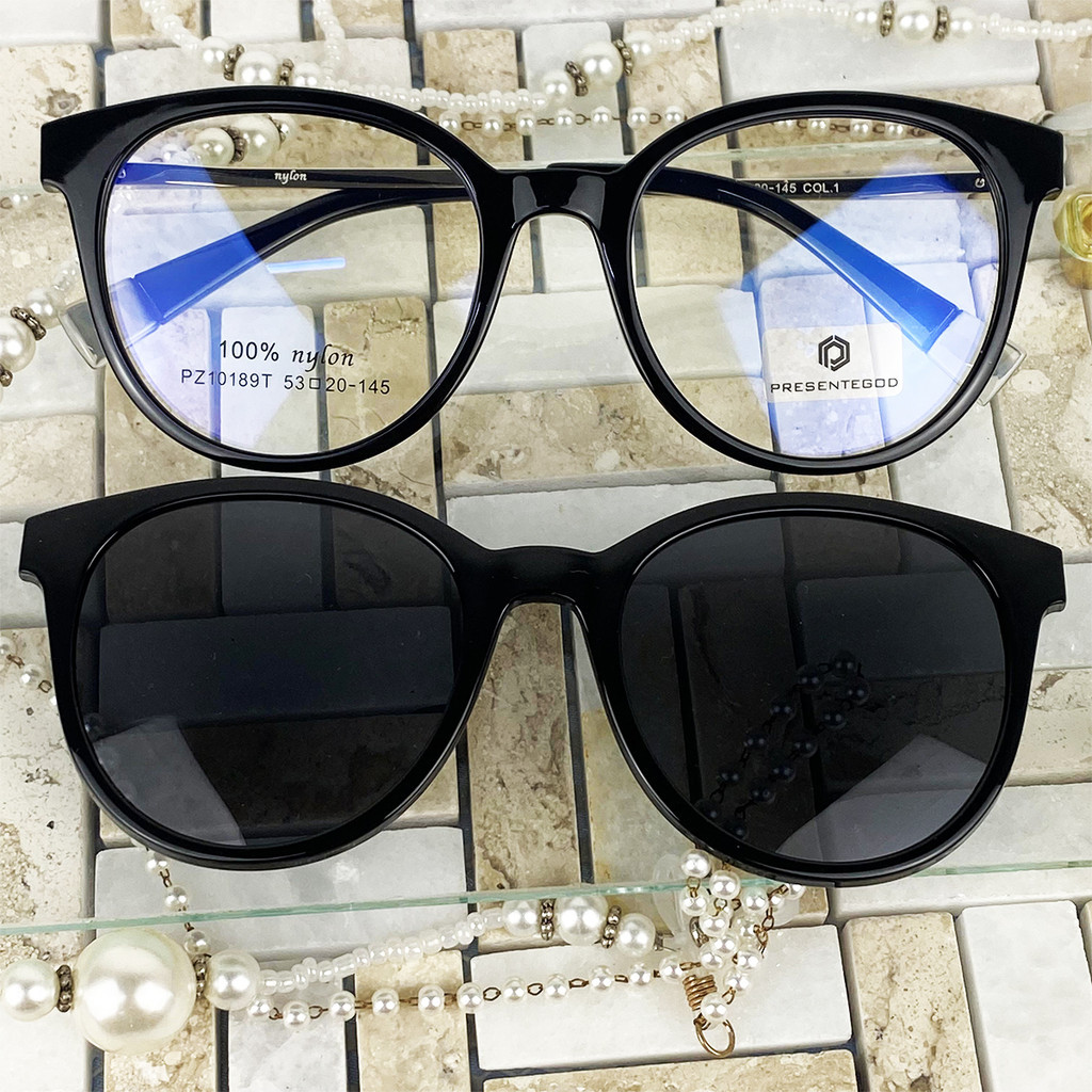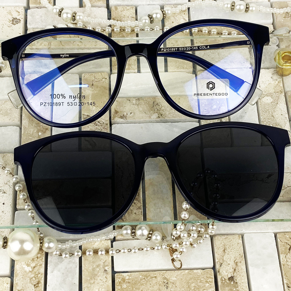 Armação De Óculos Feminino Em TR90 Redondo Resistente Com Clipon 2 Em 1 Polarizado CF530