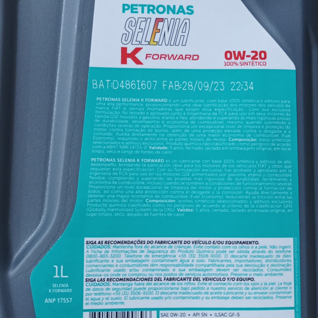 Kit 3 Litros De Oleo 0W20 Selenia E Filtro De Oleo Para Fiat Argo Uno Mobi 1.0 3 Cilindros Firefly
