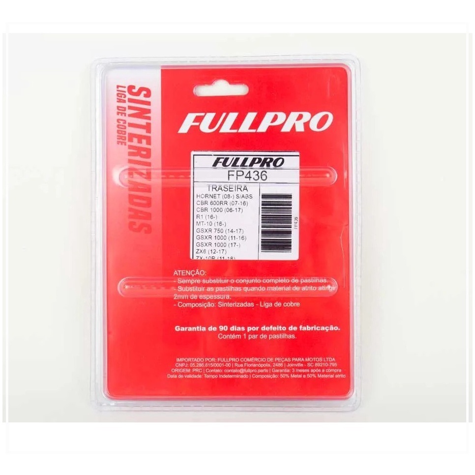 Pastilha Freio Traseira Zx10r Cbr 1000 Fullpro Sinterizada