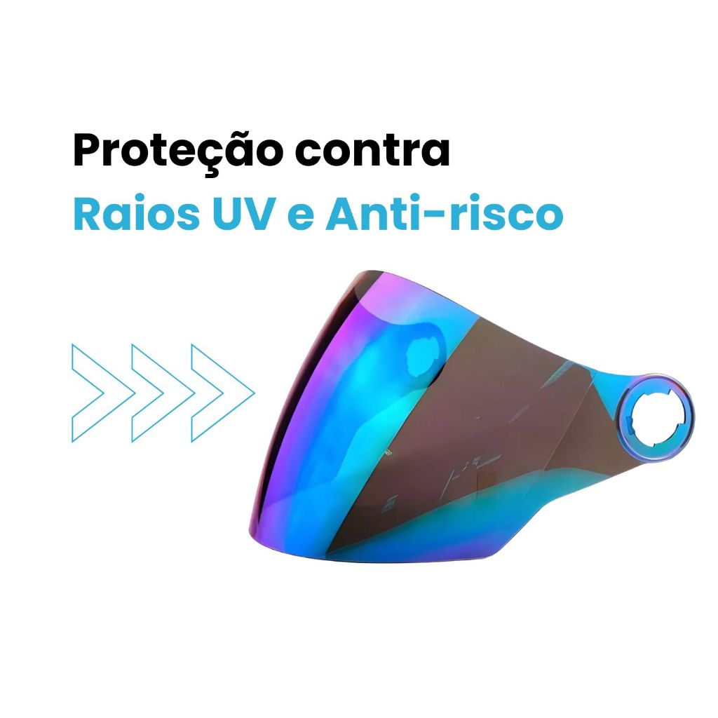 Viseira Antirisco Capacete New Libert 3 Aberto Proteção UV Espelhado