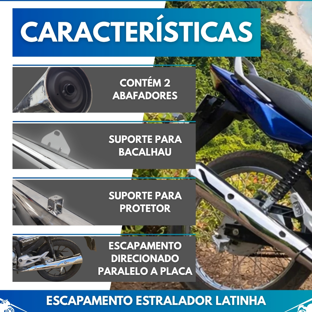 Escapamento Estralador Lata Titan Fan Start Cargo 160 2016 2024 Com Protetor