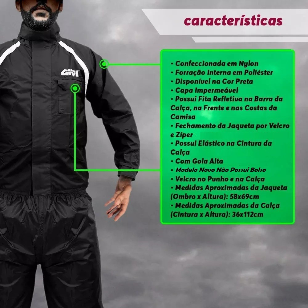 Capa Chuva Motoqueiro Motoboy Givi Nylon Impermeável Preto