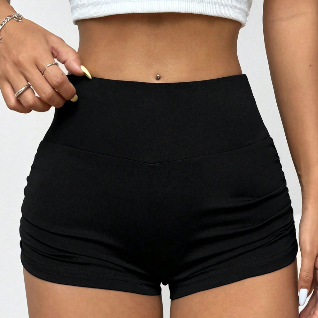 Short Franzido Lateral Cós Alta Moderno Tendência Verão Estiloso Treino Academia Caminhada