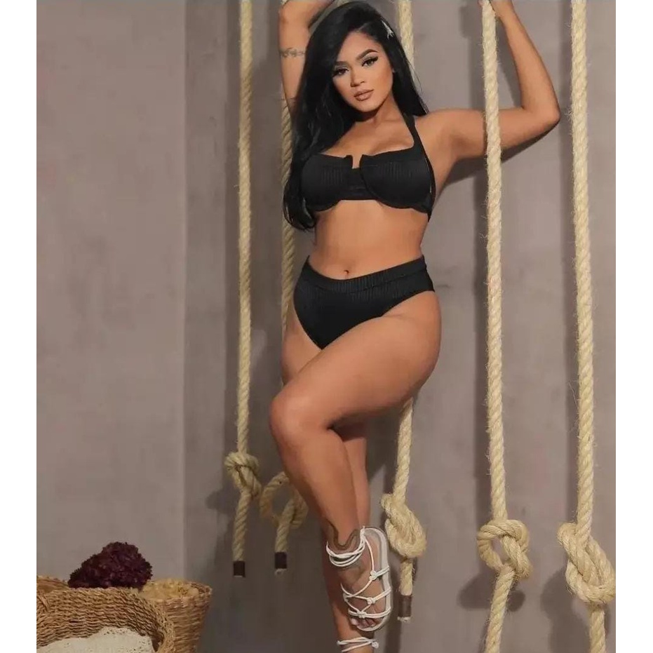 Biquini Canelado Cintura Alta Com Bojo Verão Moda Praia (Inova Stilo)