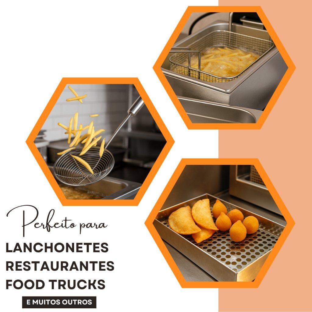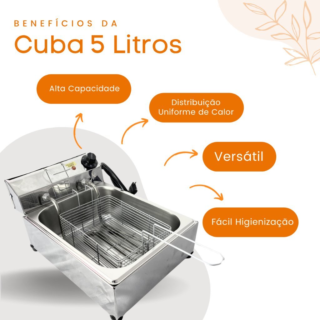 Fritadeira Elétrica de Pastel Batata Cuba 5 Litros com Escorredor de Fritura e Escumadeira Pastelaria Industrial